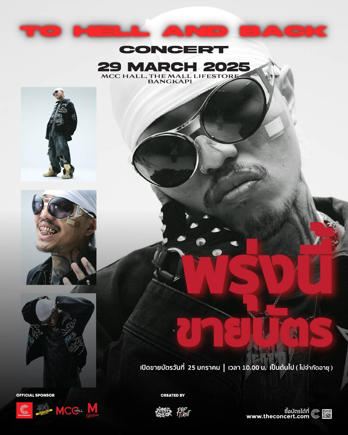 วงการแรปจะลุกเดือดเป็นไฟ!! เมื่อแรปสตาร์ที่พวกคุณคุ้นเคย มารวมตัวกันในคอนเสิร์ตครั้งประวัติศาสตร์ใน “ALREADY DEADD TO HELL AND BACK” กับสมรภูมินรกเดือดเลือดพล่าน นำแก๊งโดย YOUNGOHM, GAVIN D, FIIXD, YOUNGGU, DAIMOND MQT และ NGAZ พร้อมสองดีเจอย่าง DJ NAT และ DJ T DOUBLE-E แท๊กทีมกันมาสาดพลังความดิบเถื่อนสุดมันส์ในวันเสาร์ที่ 29 มีนาคม 2568 ณ MCC HALL ชั้น 3 THE MALL LIFESTORE BANGKAPI