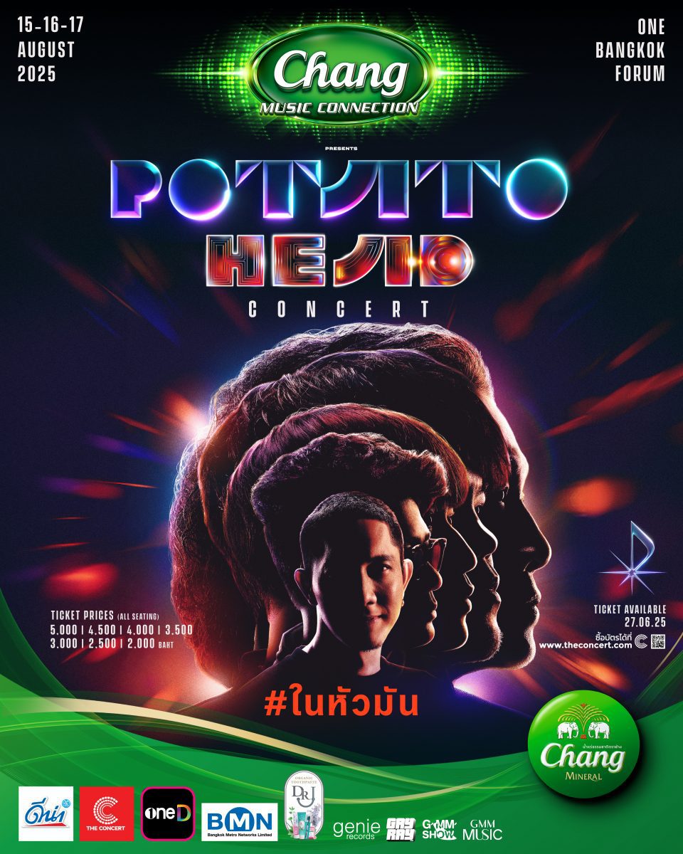 POTATO วงร็อกที่ขวัญใจแฟนเพลงชาวไทย เตรียมระเบิดความมันครั้งใหม่กับคอนเสิร์ตเต็มรูปแบบในรอบ 6 ปี Chang Music Connection presents POTATO HEAD CONCERT #ในหัวมัน คอนเสิร์ตที่ไม่ใช่แค่โชว์ดนตรี แต่คือประสบการณ์ทางอารมณ์และจินตนาการแบบจัดเต็ม! คอนเสิร์ตครั้งสำคัญที่จะเปลี่ยนทุกความ ธรรมดาให้กลายเป็นความสนุก พร้อมชวนทุกคนดำดิ่งสู่โลกแห่งจินตนาการในสไตล์ของวง POTATO จัดโดย GAYRAY ทีมงานคุณภาพจาก GMM SHOW ผู้จัดงานคอนเสิร์ตและเฟสติวัลที่ดีที่สุดของประเทศ เตรียมตัวให้พร้อมกับ 3 รอบการแสดง ในวันที่ 15,16 และ 17 สิงหาคม 2568 ณ One Bangkok Forum
