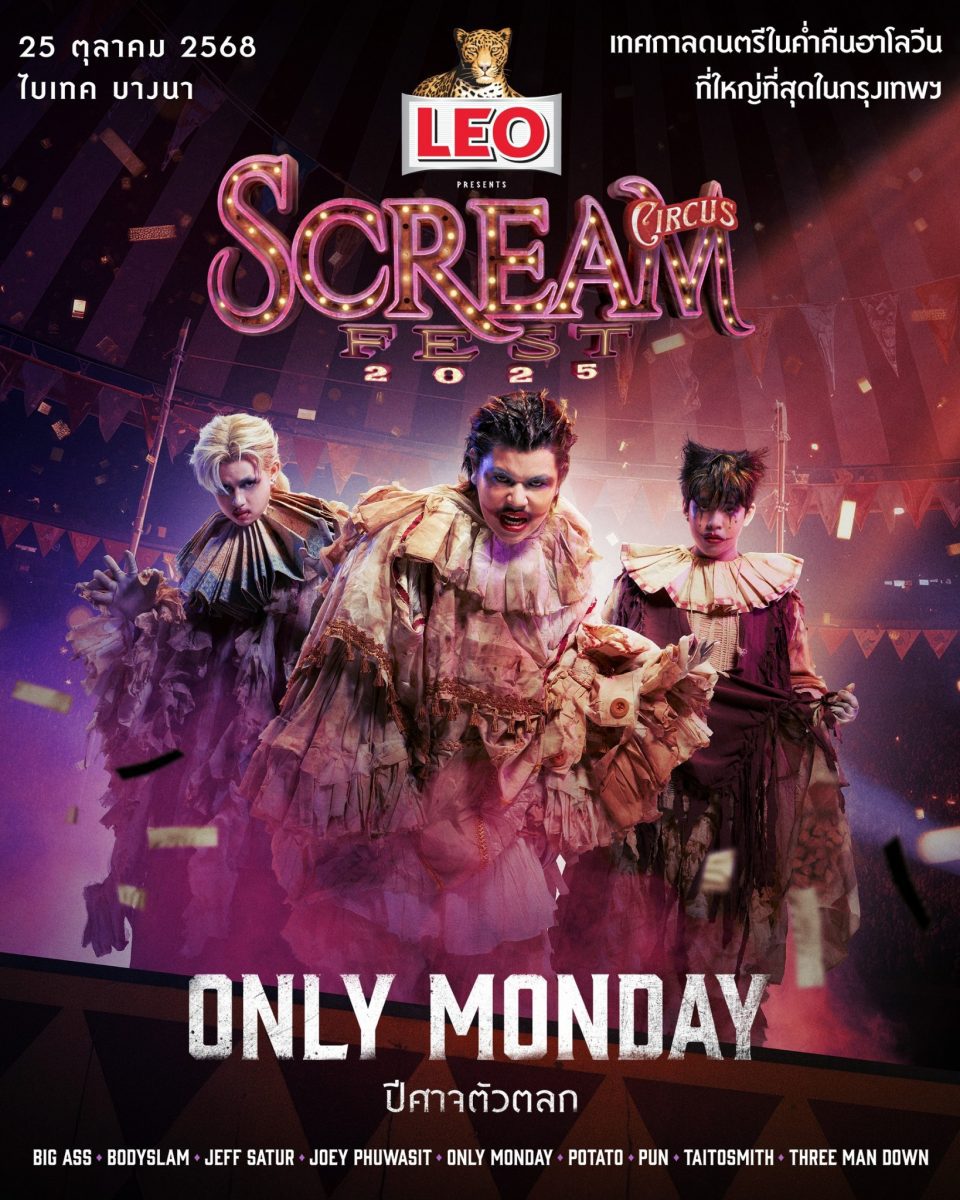 จากค่ำคืนฮาโลวีนสุดสยอง กำลังจะกลายเป็นค่ำคืนแห่งความหลอนสุดมัน กับงาน LEO PRESENTS SCREAM FEST 2025 เทศกาลดนตรีในค่ำคืนฮาโลวีนที่ใหญ่ที่สุดในกรุงเทพฯ ที่จะจัดขึ้นใน วันเสาร์ที่ 25 ตุลาคมนี้ ที่ BITEC BANGNA HALL 98-100 งานนี้ผู้จัดงาน Idea Fact ภายใต้ GMM SHOW ได้เปลี่ยนไบเทคฮอลล์ให้กลายเป็น “SCREAM CIRCUS สวนสนุกร้าง ตำนานหลอน” โดยตั้งใจให้เหล่าคนที่ชอบลองดี ได้เข้ามารับประสบการณ์ชมเทศกาลดนตรีที่แตกต่างจากงานอื่นโดยสิ้นเชิง เริ่มจากที่สุดของ Line up ที่ทุกคนต้องกรีดร้อง “BODYSLAM, BIG ASS, ONLY MONDAY, THREE MAN DOWN, JOEY PHUWASIT, TAITOSMITH, POTATO, JEFF SATUR, PUN” มาสวมบทปีศาจที่เคยอยู่ในสวนสนุกร้างแห่งนี้ กำลังถูกปลุกให้ฟื้นคืนชีพ และกลับมาโลดแล่นบนเวที สร้างความหลอนสุดมัน พร้อมด้วยเอฟเฟคแต่งหน้าและแต่งตัวตามธีมงานแบบที่ไม่เคยเกิดขึ้นที่ไหนมาก่อน โดย BODYSLAM รับบท ผู้คุมวิญญาณ,BIG ASS รับบท ปีศาจจอมพลัง,ONLY MONDAY รับบท ปีศาจตัวตลก,THREE MAN DOWN รับบท ปีศาจเวทมนตร์,JOEY PHUWASIT รับบท ปีศาจกายกรรม, TAITOSMITH รับบท ปีศาจควบคุมวิญญาณสัตว์,POTATO รับบท ปีศาจมีด,JEFF SATUR รับบท ปีศาจไฟ,PUN รับบท ปีศาจหุ่นเชิด” นอกจากจะได้เห็นศิลปินทำในสิ่งที่ไม่เคยทำมาก่อน ด้านโปรดักชั่นเตรียมตัวพบกับความหลอนที่มันที่สุดแบบจัดหนัก จัดเต็ม ทั้งงานออกแบบดีไซน์ งานโปรดักชั่น แสง สี เสียง ให้เป็นคืนแห่งความสนุก เหนือจินตนาการ เหมือนหลุดเข้าไปในสวนสนุกร้างที่เต็มไปด้วยตำนานหลอนแต่ถ่ายรูปได้ทุกมุม!! เท่านั้นยังไม่พอมีกิจกรรมเอาใจสายแฟชั่น MAKEUP STATION ให้ได้ฟินิชลุคในธีมสวนสนุกร้าง รวมไปถึงกิจกรรมสุดหลอนอีกมากมายรอทุกคนอยู่ และที่สำคัญเดินทางสะดวก สามารถเดินทางมาปลดปล่อยตัวเอง ให้เป็นคืนเดียวของปีที่สนุกได้แบบปล่อยผี!!