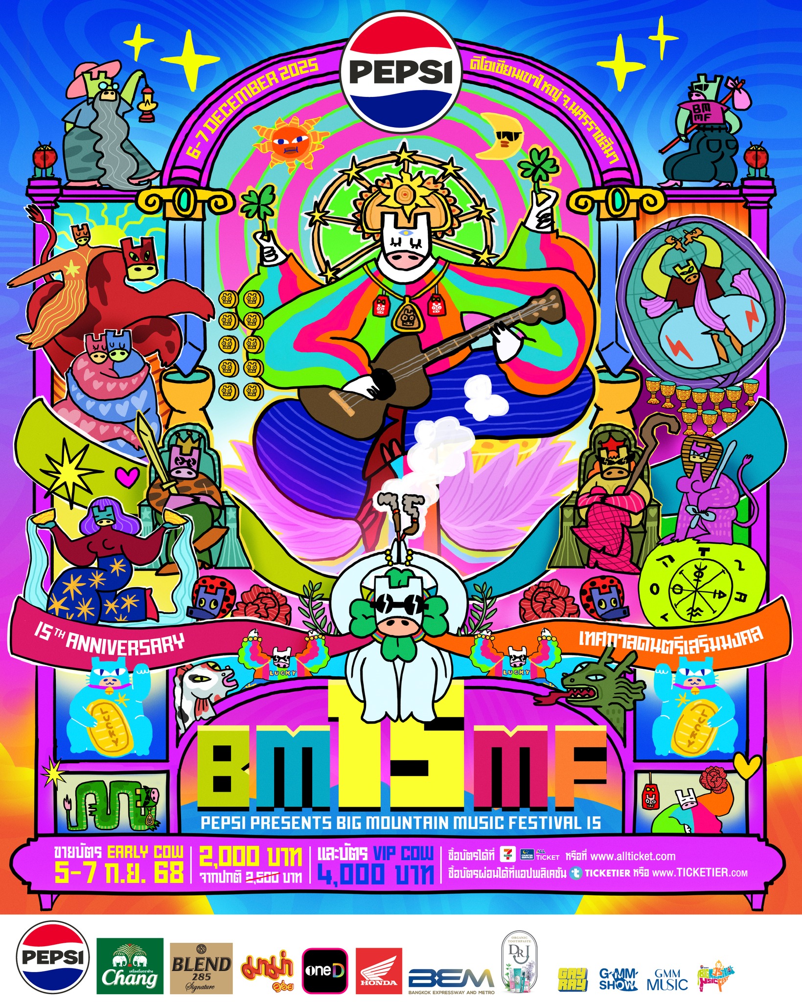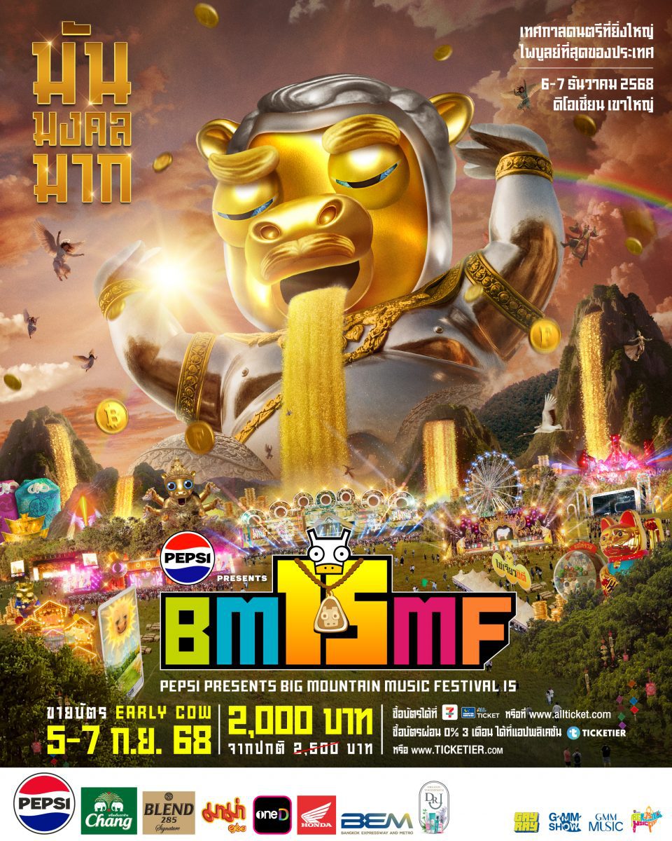 นับถอยหลังอีกไม่นานเกินรอ เทศกาลดนตรีที่ใหญ่ที่สุดในไทยกำลังจะกลับมาอีกครั้ง ในวันเสาร์ที่ 6 และวันอาทิตย์ที่ 7 ธันวาคม 2568 ณ ดิ โอเชียน เขาใหญ่ กับ “Pepsi presents Big Mountain Music Festival ครั้งที่ 15” (เป๊ปซี่ พรีเซนต์ บิ๊กเมาน์เท่น มิวสิค เฟสติวัล ครั้งที่ 15) โดยผู้จัดฝีมือดีที่สร้างความประทับใจให้ผู้เข้าร่วมงานมาอย่างต่อเนื่องทุกปีอย่าง “GAYRAY” หน่วยงานภายใต้ GMM SHOW