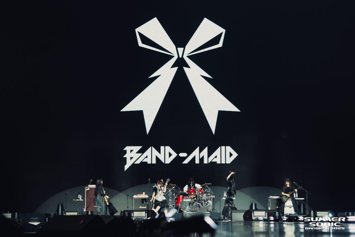 พลังความร้อนแรงยังต่อเนื่องกับการปรากฏตัวของ BAND-MAID ที่มาในชุดเมดสุดไอคอนิก แต่สิ่งที่ออกมาจากเวทีกลับเป็นซาวด์ร็อกจัดจ้าน เสียงกีตาร์และกลองที่กระแทกใจ ทำให้ทั้งฮอลล์ตกอยู่ในมนตร์สะกด ความคิ้วท์ภายนอกผสานกับความแข็งกร้าวของซาวด์ได้อย่างลงตัว พร้อมโซโล่กีตาร์และเบสที่เรียกเสียงกรี๊ดสนั่นฮอลล์