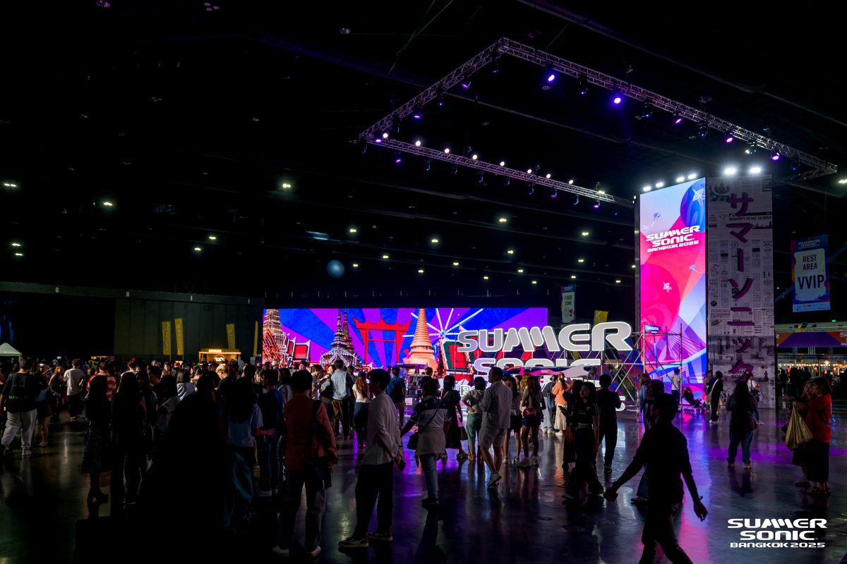 สุดสัปดาห์นั้น กรุงเทพฯ ถูกโอบล้อมด้วยพลังของ SUMMER SONIC บรรยากาศรอบ IMPACT CHALLENGER HALL 1-3 เต็มไปด้วยความตื่นเต้น จอ LED ขนาดมหึมาติดตั้งด้านนอกส่องแสงเชื้อเชิญผู้คนจากทั่วโลกให้เข้ามาสัมผัสโลกแห่งเสียงเพลง