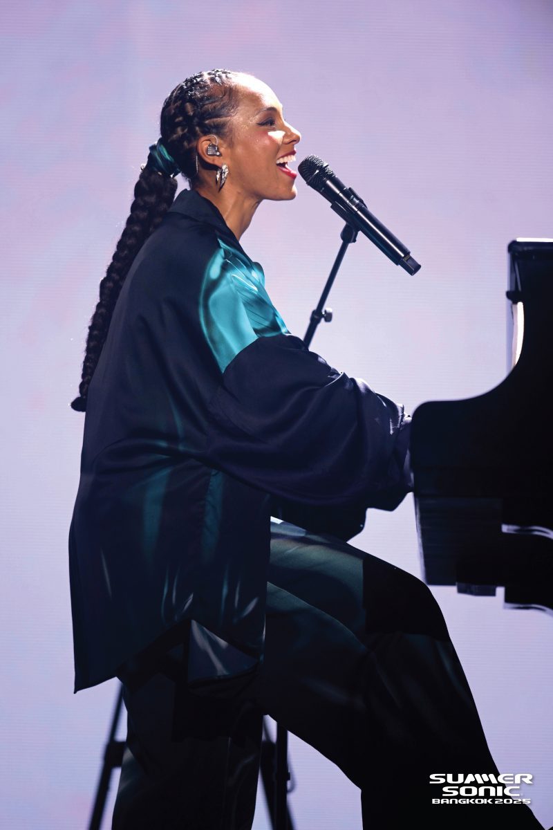 ปิดท้ายวันสุดท้ายของ SUMMER SONIC BANGKOK 2025 ด้วยเฮดไลเนอร์ระดับโลก Alicia Keys เสียงเปียโนอันทรงพลังของเธอเปิดอินโทรเพลง “If I Ain’t Got You” ทำให้ทั้งฮอลล์เงียบลงอย่างพร้อมเพรียง ราวกับเวลาหยุดนิ่ง เสียงร้องที่เต็มไปด้วยวิญญาณของ Alicia สะกดผู้ชมทุกคนในฮอลล์เมื่อเข้าสู่เพลง “Empire State of Mind” ภาพมหานครนิวยอร์กซ้อนทับเข้ากับค่ำคืนของกรุงเทพฯ สร้างความรู้สึกเชื่อมโยงอันทรงพลัง และในจุดพีคของโชว์ MILLI ศิลปินหญิงไทยมากความสามารถปรากฏตัวเป็นแขกรับเชิญพิเศษ จุดไฟเสียงเชียร์จากแฟน ๆ ให้ดังกึกก้องทั่วฮอลล์