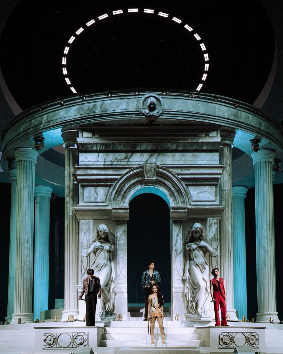 ไฟลุกโชนขึ้นอย่างพร้อมเพรียงบนเวทีอิมแพ็คที่ถูกเนรมิตกลายเป็นมหาวิหารขนาดย่อม ที่ “BOWKYLION” เปิดฉากด้วยบทบรรเลงเพลง “คารวะ” เป็นครั้งแรก ท่ามกลางเสียงกรี๊ดกระหึ่มที่เธอลอยตัวลงมาต้อนรับแฟนเพลงทั่วทั้งฮอลล์ ก่อนเข้าสู่พาร์ทเปิดตัวอย่างเต็มรูปแบบกับ “บทเปิดแห่งศรัทธา” ที่พาคุณย้อนเวลากลับสู่เพลย์ลิสต์อินดี้ในตำนาน ได้แก่ “ลงใจ”, “ยิ้มมา”, “คิดถึงแต่” ต่อด้วยตำนานบทถัดมาอย่าง “บทบูชาแห่งความทรงจำ” พาร์ทที่ไต่ระดับเข้าสู่ห้วงอารมณ์ที่ลึกขึ้นผ่านการไล่เฉดสีของ Stage Visuals จากสีขาวดำที่ค่อย ๆ เพิ่มไดนามิกเติมเต็มสีสันในตอนท้าย