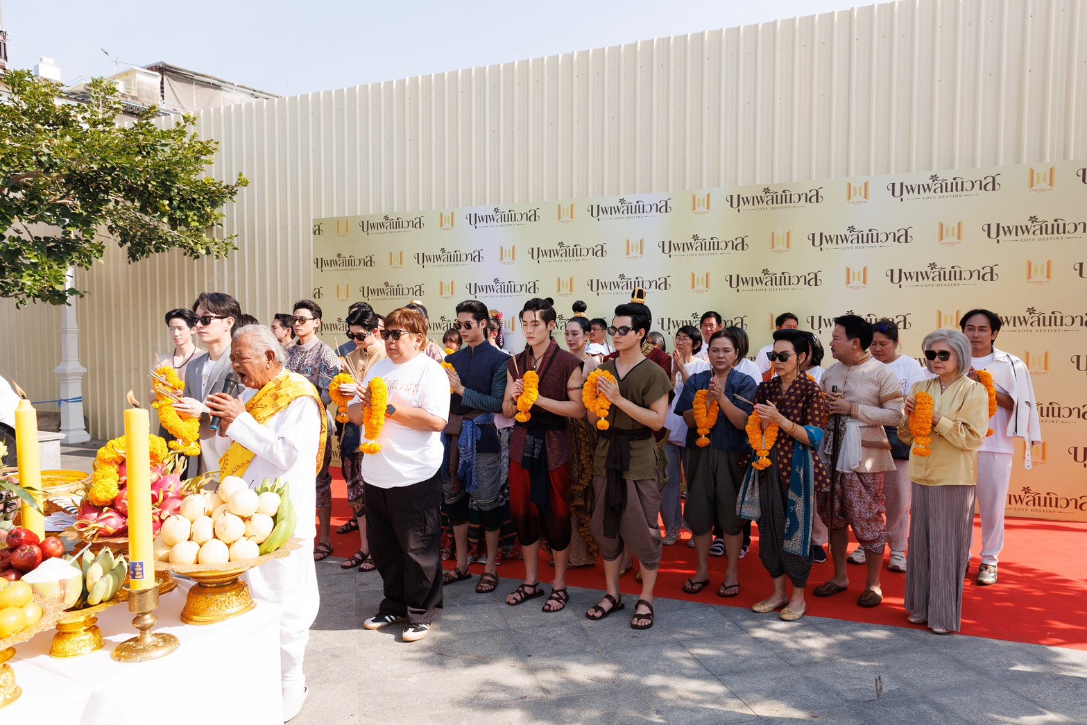 โดยงานบวงสรวงนั้น จัดขึ้นที่ ท่าเรือวัดโพธิ์ เพื่อให้มีฉากหลังเป็น พระปรางค์เก่าแก่ของวัดอรุณฯ(ที่สร้าง มาตั้งแต่สมัยอยุธยา) พร้อมกับการเปิดตัวทัพนักแสดงที่แปลงกายมาในเสื้อผ้าหน้าผมจัดเต็มเหมือนหลุดมาจากซีรีส์ เพื่อมาร่วมบวงสรวงในครั้งนี้ โดยนอกจากการปรากฎตัวของ “ออกัส” ในมาด พ่อเดช กับ “เล้ง” ในมาด พ่อแก้ว (หรือแม่การะเกด) ที่เล่นเอาแฟนกรี๊ดกันดังลั่นแล้ว ยังเต็มไปด้วยทัพนักแสดงที่มาพร้อมบทที่สุดเซอร์ไพร์สอีกด้วย อาทิ พ่อเรือง กับ แม่หญิงจันทร์วาด มาเป็น พ่อเรือง (ณ ณภัทร วิกัยรุ่งโรจน์) คู่กับ พ่อวาด (วิน ธนพล อุควงศ์เสรี) , “อีผิน” กับ “อีแย้ม” มาเป็น “อ้ายผิน” (ธัญ ธัญธร วิวัฒนเดชา) กับ “อ้ายแย้ม” (เฟย์ ชินทัพพ์ ดวงแก้ว) , ส่วน “ออกญาโหราธิบดี” ได้ พี่จตุรงค์ มกจ๊ก และ แม่นางจำปา ได้ เชฟป้อม หม่อมหลวงขวัญทิพย์ เทวกุล มาแสดงให้ , ส่วนบท “มารี ทองกีมาร์” ตกเป็นของสาว “แอนนา เสืองามเอี่ยม” พร้อมกับครั้งแรกของสาว “ฐิสา วริฏฐิสา ลิ้มธรรมมหิศร” ที่มาเล่นซีรีส์ช่อง 3 ในบท “ท้าวศรีจุฬาลักษณ์” อีกด้วย เรียกว่านักแสดงแน่นคับคั่งจอกันเลยทีเดียว หลังบวงสรวงเสร็จ