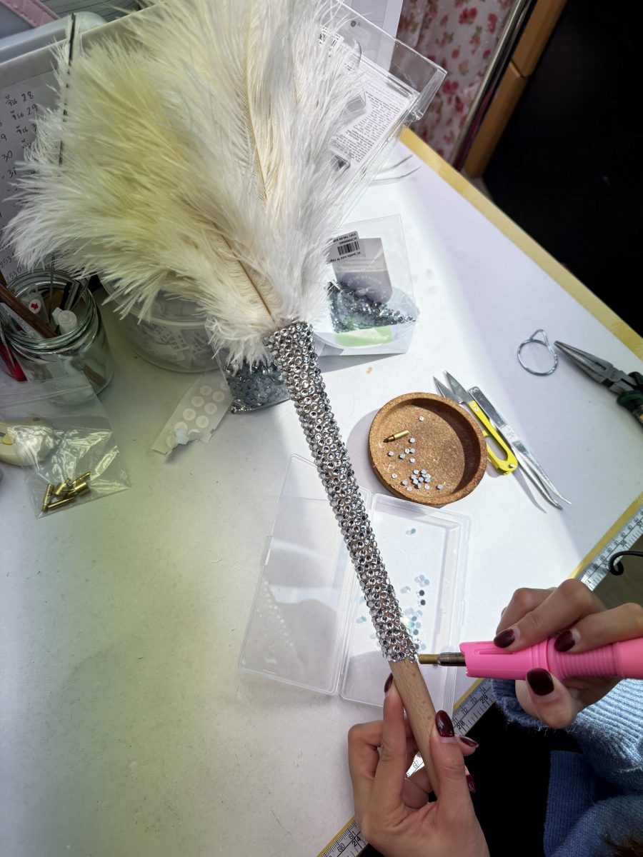 ความวิววับของคริสตัล เมื่อนำมาผสานกับศิลปะการถักเชือก มาคราเม่ (Macrame) สู่ เทคนิค ซิกเนเจอร์ของแบรนด์ อย่าง “คริสตัลมาคาเม่” หรือ การถักเชือกด้วยมือโดยไม่ใช้เข็มหรืออุปกรณ์ใดใด โดย ออม-ดิษยา เผยว่า เดรสชุดนี้สร้างสรรค์ขึ้นจากบุคลิกของสาวแต้วที่มีทั้งความน่ารัก ขี้เล่น ประกอบเป็นชุด After party จึงสอดแทรกความสนุกไว้ในซิลูเอตของชุด โดยนำ คริสตัลมาคาเม่ที่ถักทอเป็นลวดลายมาเย็บบนผ้าซาติน เชือกแต่ละเส้นประสานกันเป็นเดรสสั้น ดีไซน์หรู แต่งระบายที่ชายกระโปรง เพิ่มกิมมิกด้วยถุงมือปักคริสตัล และคฑาขนนกกระจอกเทศประดับคริสตัล เรียกว่าเป็นเดรสที่มีทั้งความอ่อนหวาน หรู และเซ็กซี่ ในเวลาเดียวกัน