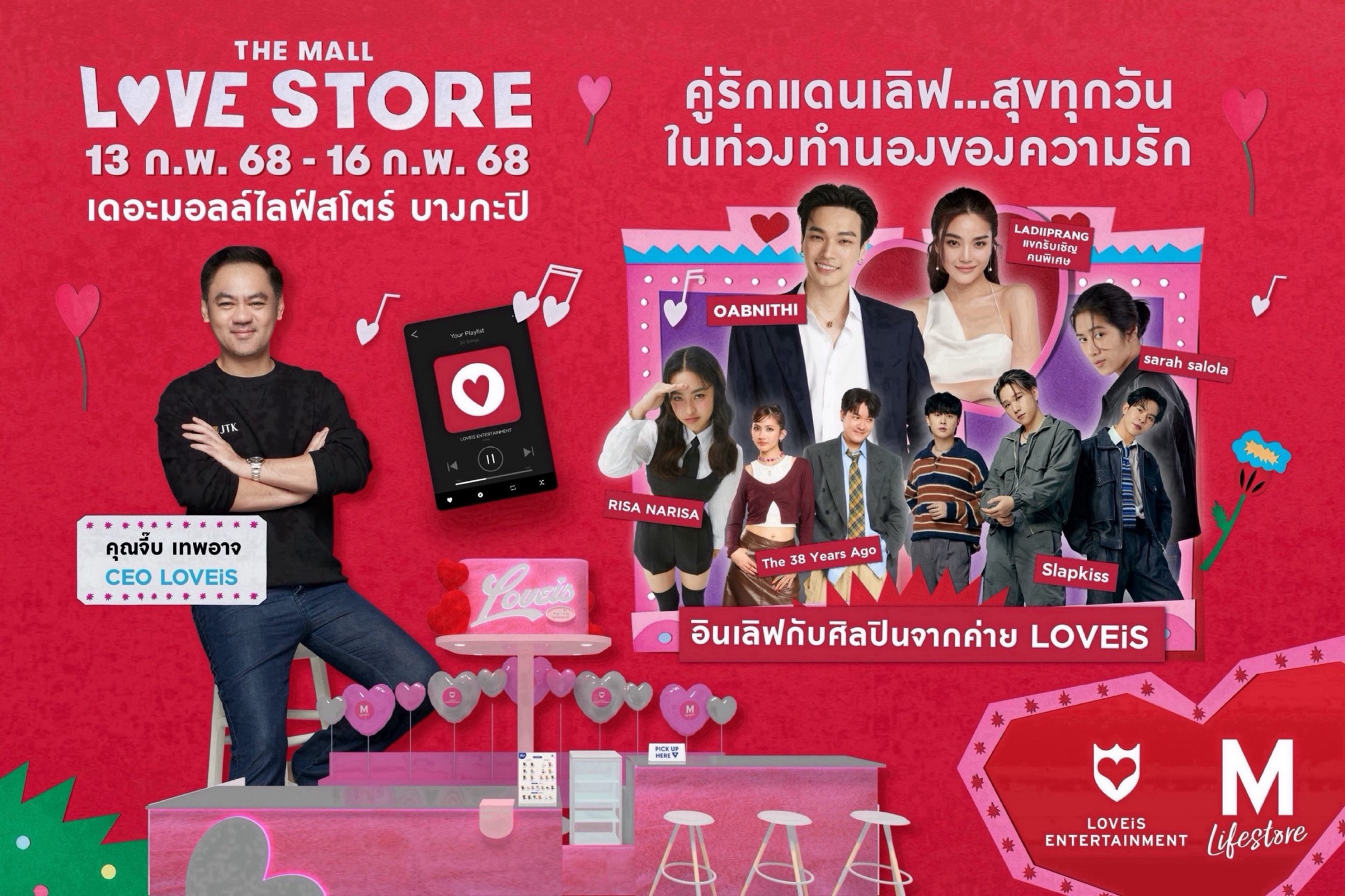 ประเดิมความหวาน ที่ เดอะมอลล์ไลฟ์สโตร์ บางกะปิ ที่ M FASHION HALL 1 ชั้น G พบกับครั้งแรก! ของการจับมือร่วมกับ LOVEiS ENTERTAINMENT จัดกิจกรรมความรักผ่านเสียงเพลง ภายใต้คอนเซ็ปต์ “ท่วงทำนอง ของความรัก” สร้าง MOMENT OF LOVE ที่อบอวลไปด้วยความรัก มาพร้อมกับโซน LOVE GALLERY มุมฟังเพลงรักกับ PLAYLIST สุดพิเศษจาก LOVEiS ENTERTAINMENT, WALL OF LOVE บอกรักกันผ่านหน้าจอ LED และร่วมเติมความหวานครั้งแรกกับป๊อบอัพคาเฟ่สุดโรแมนติก LOVEiS CAFE’ พร้อมฟินกับบทเพลงรักเพราะๆ จากศิลปินค่าย LOVEiS ENTERTAINMENT ทุกวัน อาทิ