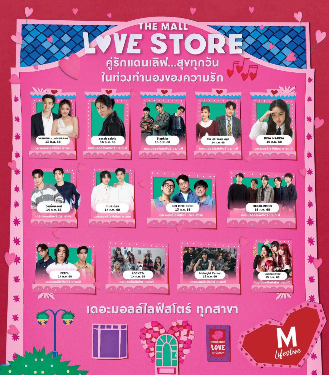 เดอะมอลล์ไลฟ์สโตร์ ร่วมฉลองเทศกาลวาเลนไทน์ จัดงาน “THE MALL LOVE STORE : คู่รักแดนเลิฟ สุขทุกวันในท่วงทำนองของความรัก” ชวนศิลปินนักร้องคนดัง นำโดย โอบ โอบนิธิ ศิลปินน้องใหม่ค่าย LOVEiS ที่มาออกงานครั้งแรก ควงคู่มากับหวานใจ “ปราง กัญญ์ณรัณ” พร้อมเสริมทัพด้วยศิลปินคนดังมากมาย ที่จะมาร่วมสร้างสีสัน LOVE ON STAGE ผ่านบทเพลงสุดพิเศษ ตั้งแต่วันที่ 13 – 16 กุมภาพันธ์ 2568 ที่เดอะมอลล์ไลฟ์สโตร์ บางกะปิ, ท่าพระ, งามวงศ์วาน และบางแค