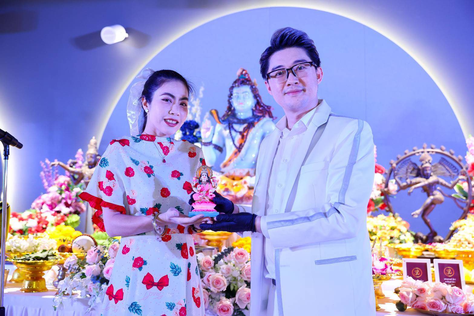 จากนั้น อาจารย์ที ได้มอบ “พระพิฆเนศร์” “พระแม่อุมาเทวี” ให้กับเหล่าคนบันเทิง นำไปบูชาเพื่อเป็นสิริมงคลกับชีวิต ส่วนใครที่สนใจอยากจะมากราบขอพร “องค์พ่อศิวะ” สามารถมาได้ทุกวันที่ชั้น 7 ห้างบิ๊กซี ราชดำริ