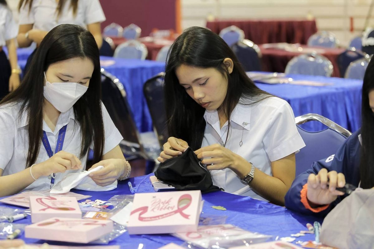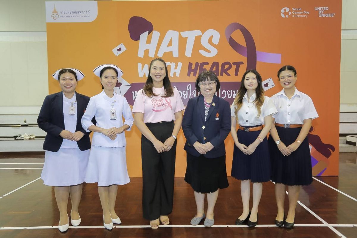 เมื่อวันที่ 26 กุมภาพันธ์ 2568 ผู้ช่วยศาสตราจารย์ ทัศนีย์วรรณ พฤกษาเมธานันท์ รองคณบดีคณะพยาบาลศาสตร์อัครราชกุมารี ราชวิทยาลัยจุฬาภรณ์ ร่วมกับ คุณนภสร เจริญผล ผู้จัดการฝ่ายสื่อสารองค์กรและกิจกรรมเพื่อสังคม บริษัท ไทยวาโก้ จำกัด (มหาชน) และ นักศึกษาราชวิทยาลัยจุฬาภรณ์ ร่วมเปิดกิจกรรมเสริมสร้างทักษะชีวิตนักศึกษาตามอัตลักษณ์ราชวิทยาลัยจุฬาภรณ์ ส่งต่อความห่วงใยในเดือนแห่งความรัก “ภายใต้แนวคิด Hats With Heart : หมวกสวยด้วยใจให้ผู้ป่วยมะเร็ง” โดยมี คุณณัฐวีณา ประสาธน์วนิช อาสาสมัครจากPlacebo Club การฟื้นฟูมะเร็งและจิตวิญญาณด้วยดนตรีบำบัด ที่มารับหน้าที่วิทยากรรับเชิญในการถ่ายทอดประสบการณ์และให้ความรู้ ในหัวข้อเรื่อง “กำลังใจจากผู้ป่วยมะเร็งสู่จิตอาสา” จากนั้นทุกคนได้ร่วมแรงร่วมใจรวมพลังคนละไม้คนละมือในการ DIY ตกแต่งหมวกสวย เพื่อให้ผู้ป่วยมะเร็งที่ได้รับผลข้างเคียงจากการรักษาทางเคมีบำบัด นำไปสวมใส่เพื่อเสริมสร้างบุคลิกภาพ สร้างความมั่นใจ และยังเป็นการเติมกำลังใจให้กันเนื่องในเดือนแห่งความรัก และเนื่องในวันมะเร็งโลก ซึ่งตรงกับวันที่ 4 กุมภาพันธ์ ของทุกปี เป็นวันที่องค์การอนามัยโลกและสมาคมต่อต้านมะเร็งสากลกำหนดให้เป็นวันมะเร็งโลก (World Cancer Day) เพื่อให้คนทั่วโลกตระหนักถึงภัยร้ายจากโรคมะเร็ง รวมถึงรณรงค์ให้คนหันมาใส่ใจสุขภาพของตนเอง