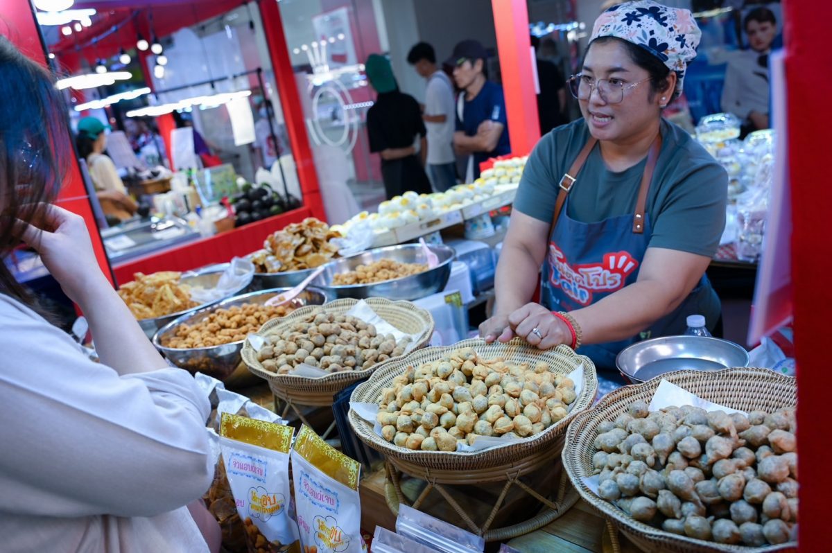ภายในงาน ก้อง ปิยะ เปิดทุกโซนทุกซอยให้ช้อปกันแบบเย็นฉ่ำ! ยกขบวนร้านเด็ด ร้านดังทั่วไทย พร้อมร้านอร่อยของดาราก็มากันครบก๊วน ม่วนจอยทั้งเมนูคาวหวาน ของทานเล่น การันตีความอร่อยจากบรรดาลูกค้า ที่ตามมาช้อปอุดหนุนหนาแน่นกันทุกอีเว้นท์ เพราะร้านไหนถ้าลิ้นยังไม่ติดโปร บอกเลยว่า Out! แน่นอน งานนี้เจ้าของตลาดยังชวนสาวสวยเซ็กซี่ “จันจิ จันจิรา จันทร์พิทักษ์ชัย” มาร่วม ช้อป ชิม เมนูอร่อยฟิน เปิดว๊าว..ของอร่อย อาทิ Top’s Homemade หมู-เนื้อแดดเดียว by ท็อป ดารณีนุช , สมูทตี้ดีใจ by ผัดไท ดีใจ, ลำพาย ก๋วยเตี๋ยวเรือ By เฟิสท์ เอกพงศ์, ครัวอรัญญา แกงเขียวหวาน, ขนมไข่ปลาคุณยายผ่องศรี, บาลิกา น้ำปลาหวาน, แม่เล็กแปดริ้ว by อุ้ม, บ้านปลาทูมหาชัย, รัชฎาลุยสวน, หอยจ๊อปูแม่วรรณา, ซ้งเสรีทอง ลูกชิ้นปลา ลูกชิ้นกุ้งกุ้ง, Royal Crown Bakery, เจ๊แม็กเว้ยเฮ้ย, เจ๊พริกกุยช่ายตลาดพลูฯ