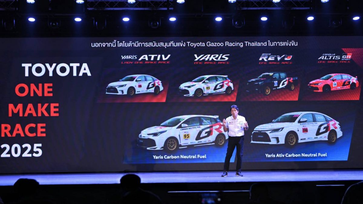 TOYOTA GAZOO Racing Thailand 2025 มอเตอร์สปอร์ตสุดมันส์ในรูปแบบเฟสติวัลที่ได้รับความนิยมสูงสุดอย่างต่อเนื่องในประเทศไทย สะท้อนแนวคิด มอเตอร์สปอร์ตคือรากฐานของการสร้างยนตรกรรมที่ดียิ่งกว่า ต่อยอดพัฒนาจากสนามแข่งสู่ท้องถนน ผ่านการแข่งขันรถยนต์ทางเรียบรายการ โตโยต้าวันเมคเรซ และกิจกรรมความบันเทิงมากมาย โดยมีการแข่งขันทั้งหมด 4 รุ่น ได้แก่ Yaris ATIV Lady One Make Race, YARIS One Make Race, Hilux REVO One Make Race และ Corolla ALTIS GR Sport One Make Race และเดินหน้าร่วมมือกับ TOYOTA MOTOR ASIA (TMA) ในการศึกษาเก็บข้อมูลและพัฒนายานยนต์จากทุกสนามแข่ง เพื่อพัฒนายนตรกรรมที่ดียิ่งกว่า อย่างไม่หยุดยั้ง