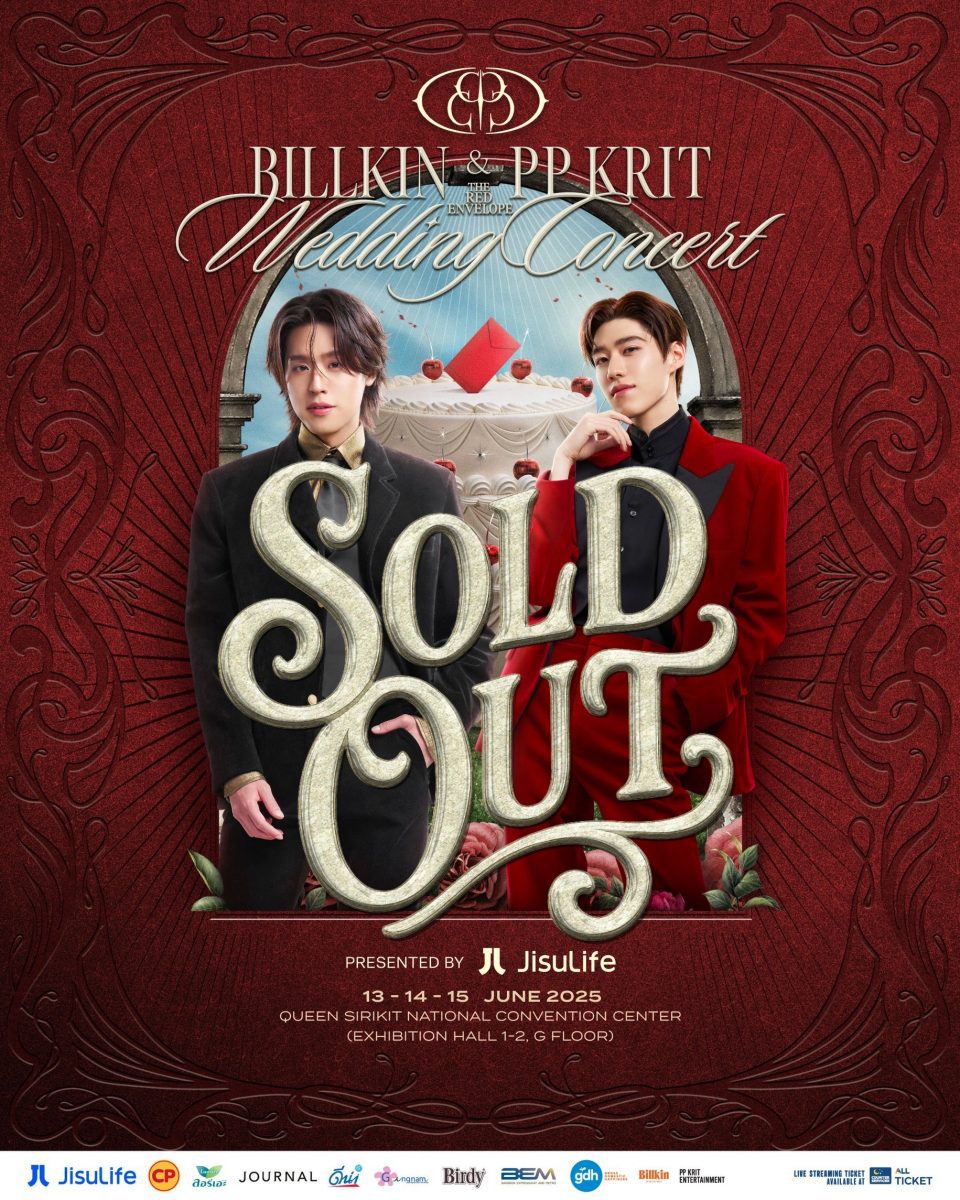 เรียกได้ว่ากระแสตอบรับแรงไม่หยุดฉุดไม่อยู่จริงๆ สำหรับคอนเสิร์ตธีมงานแต่ง “Billkin & PP Krit – The Red Envelope Wedding Concert Presented by JisuLife” ของ “บิวกิ้น-พุฒิพงศ์ อัสสรัตนกุล” และ “พีพี-กฤษฏ์ อำนวยเดชกร” ที่ฟีดแบ็กมาแรงเกินต้าน หลังจากร่อนการ์ดเชิญเปิดจำหน่ายบัตรไปได้ไม่นาน ก็สร้างตำนานใหม่อีกครั้ง เมื่อบัตร SOLD OUT ไปอย่างรวดเร็ว!! ด้วยพลังซัปพอร์ตจากแขกผู้มีเกียรติที่จะมาร่วมเป็นสักขีพยานในงานแต่งครั้งนี้ ทำให้คอนเสิร์ตทั้ง 3 รอบ เต็มทุกที่นั่ง ทุกโซน ภายในเวลาอันรวดเร็ว และด้วยความฮอตในครั้งนี้ ส่งให้ #BKPPWeddingConcert ติดเทรนด์ X อันดับ 1 ทั้งของไทยและ Worldwide อย่างต่อเนื่อง