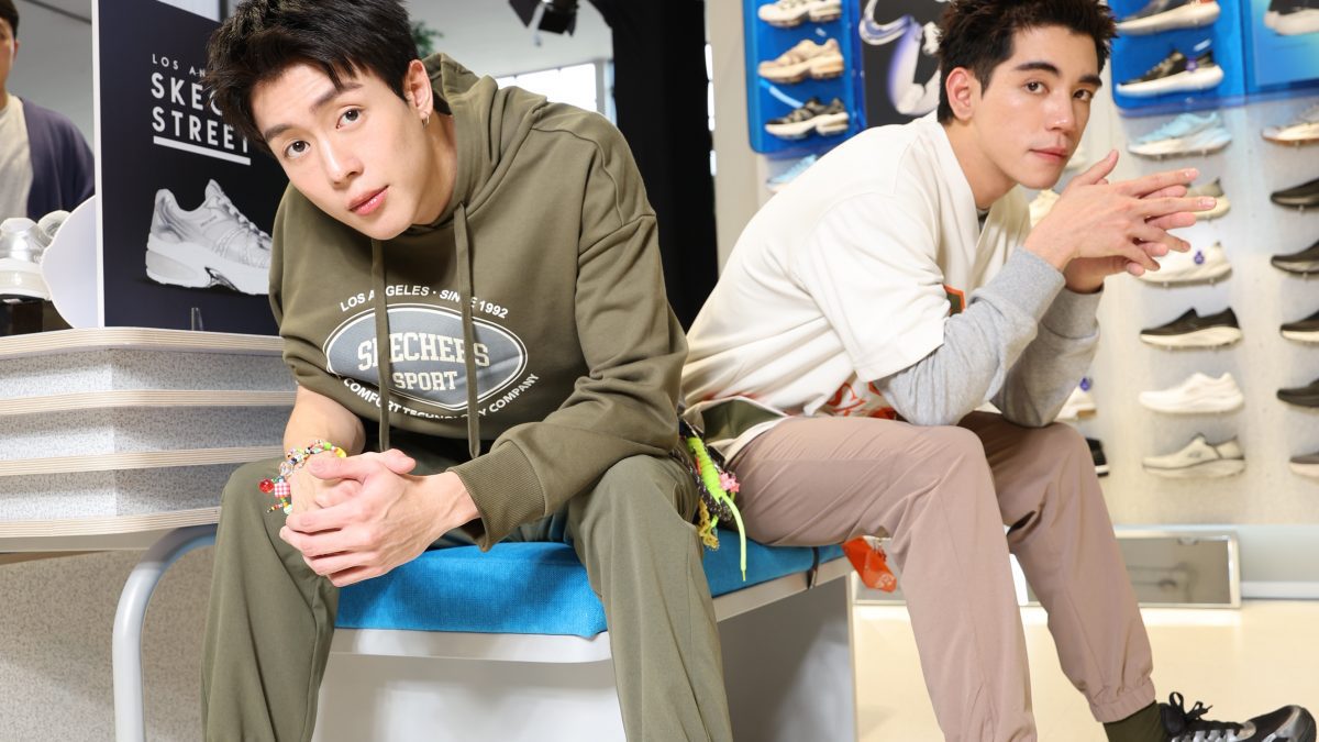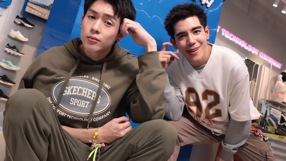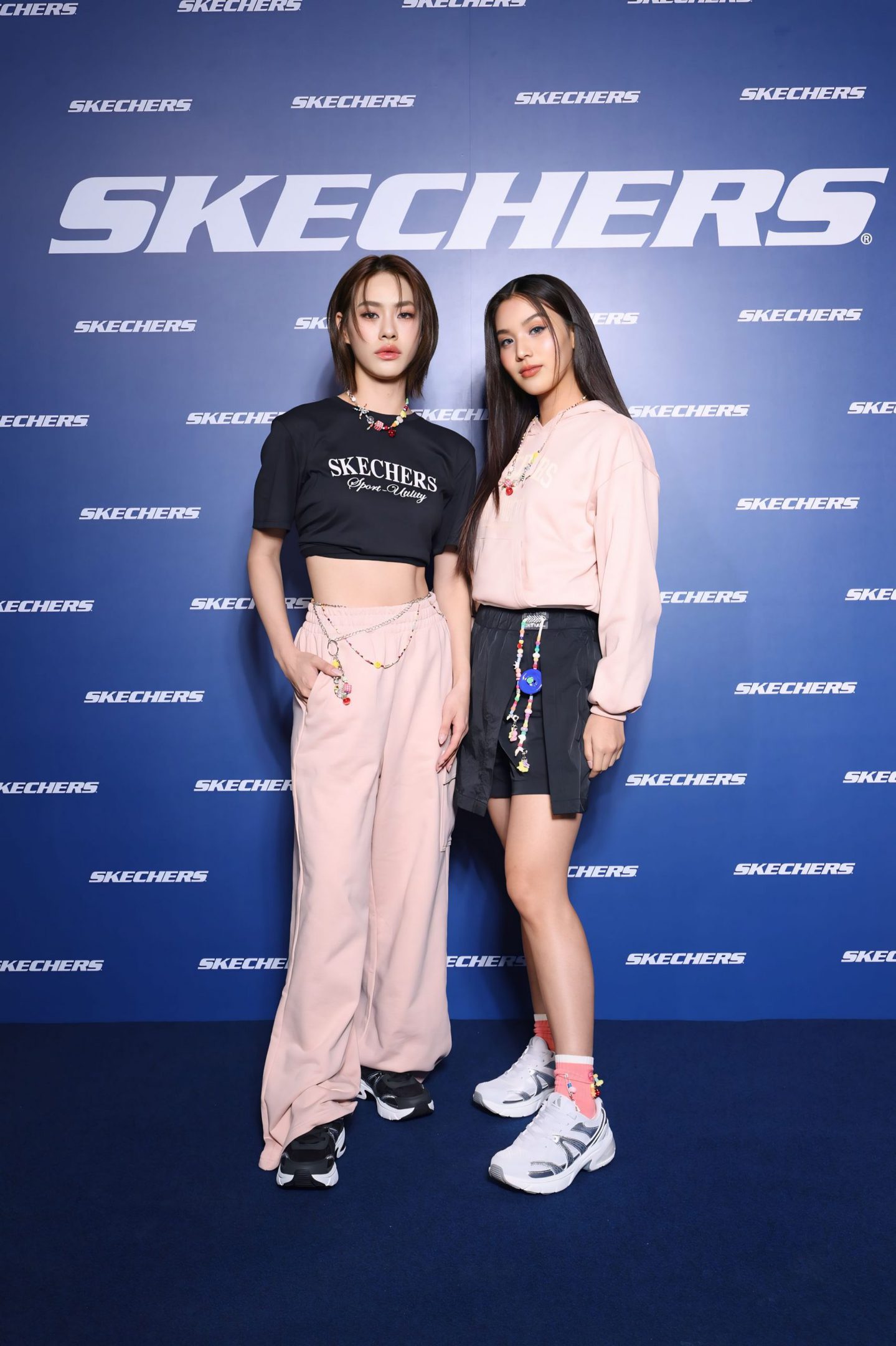 ทั้งสองสาวและสองหนุ่มศิลปินมากความสามารถ ตัวแทนสไตล์ไอคอนยุคใหม่โดดเด่นด้วยสไตล์แฟชั่นแนวสปอร์ตสุดล้ำไม่ซ้ำใครด้วยคอลเลกชันเสื้อผ้า และรองเท้าของ Skechers บอนนี่-ภัทราภัสร์ โบรัชตะสุวรรณ์ และ เอมี่-ทสร กลิ่นเนียม มาด้วยลุคแนวสตรีทแต่ต่างสไตล์ บอนนี่ดูน่ารักปนเท่แบบฉบับสาวสไตล์ Y2K ด้วยฮูดดี้โอเวอร์ไซซ์สีกุหลาบ จับคู่กระโปรงสั้นและถุงเท้าสีชมพูสดใส ฟินิชลุคด้วยสนีกเกอร์เส้นสายสีเงินเมทัลลิกดูโฉบเฉี่ยว ในขณะที่เอมี่มาในลุคของสาวสตรีทแนวหวาน สวมเสื้อยืดตัวสั้นสีขาวโชว์โลโก้ Skechers คลุมทับด้วยเสื้อคาร์ดิแกนสีชมพู โทนสีเข้าคู่กับกางเกงขายาว และรองเท้าสีดำคาดเส้นสายสีเงินเมทัลลิก