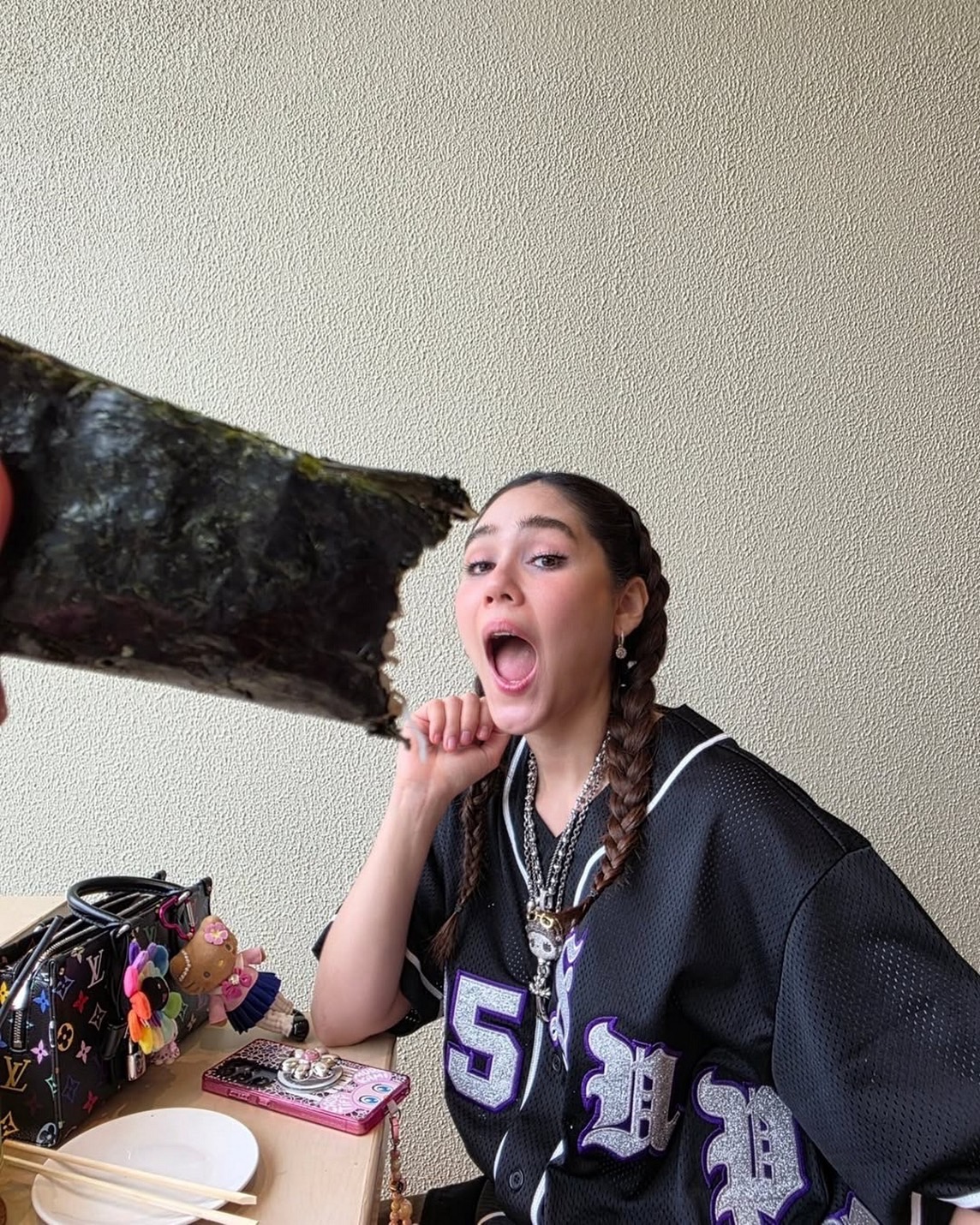 ปักหมุดร้านโปรด!! ก่อน ชมพู่-อารยา จะบินไปเดินพรมแดงที่เมืองคานส์ เลยชวน #เจ๊เกล ไปร้านโปรด ถึงกับโพสต์ใน IG ว่า “แม่เลือก @kanorihandroll no.หนึ่งในใจ เกิดอีกทีต้องมีเทอ” งานนี้เลยต้องไปสืบว่าเป็นร้าน KANORI Hand roll bar แฮนด์โรลเจ้าแรกในไทย! พร้อมส่องเมนูโปรดของแม่ชมที่มาแล้วต้องโดน คือ Madai plum ปลากะพงแดงญี่ปุ่น ราดซอสบ๊วยและใบโอบะ บอกเลยว่าแม่โปรดมากมาทีไรต้องสั่งเป็นโรลแรก, Blue crab เนื้อปูหวานไส้แน่น ๆ แบบเต็มคำ, Ankimo crispy seaweed มูสตับปลาอังกิโมะ ที่ขึ้นชื่อว่าเป็นฟัวกราส์จากท้องทะเล, Hotate yuzukosho หอยเชลล์คัดพิเศษเนื้อเด้ง ๆ ราดด้วยซอสเผ็ดที่มีส่วนผสมส้มยูสุ และ KANORI roll ที่เป็นซิกเนเจอร์ของทางร้าน จัดเต็มแบบฟูลออฟชั่น ทั้งล็อบสเตอร์ (Lobster), ไข่หอยเม่น (Uni), ทูน่าบดผสมกับต้นหอม (Negitoro) และไข่ปลาแซลมอน (Ikura) ส่วนเจ๊เกลถูกใจสาหร่ายร้านนี้เป็นพิเศษ เพราะความกรอบของแผ่นสาหร่ายที่น้องเกลกัดเข้าไปแต่ละคำดังกรุบไปเลยจ้า