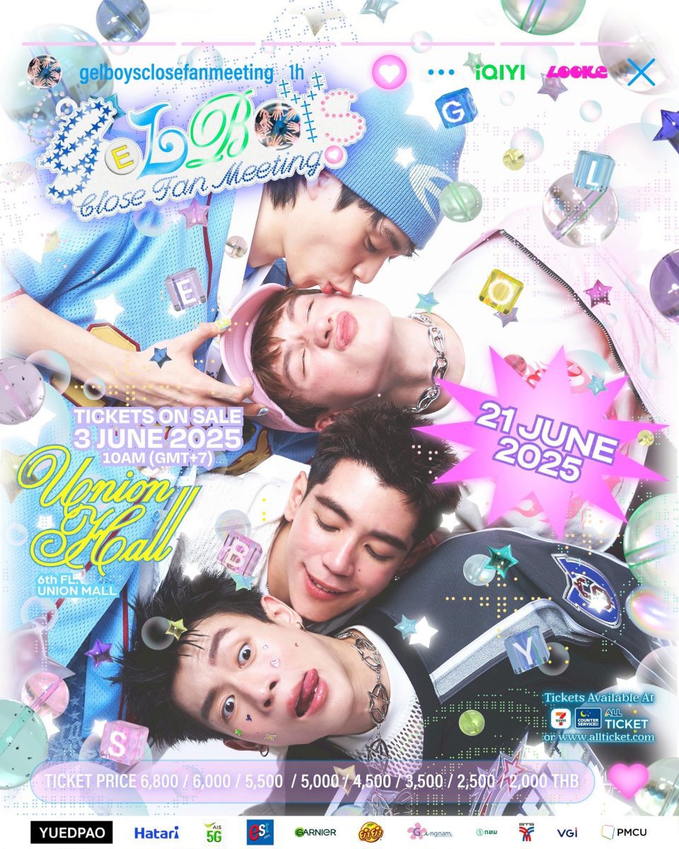 แฟน ๆ ซีรีส์ ซีรีส์ iQIYI Original ‘GELBOYS สถานะกั๊กใจ’ เตรียมกรี๊ดกันให้สุดเสียง! เมื่อ ค่าย LOOKE (ลู้คกี้) พร้อมเปิดประสบการณ์สุดใกล้ชิด จัดงาน FAN MEET ครั้งแรก ในงาน “GELBOYS CLOSE FAN MEETING” แฟนมีตที่จะพาแฟน ๆ คนพิเศษ เลื่อนขั้นสู่สถานะ ‘โคตรแฟน’ โดยงานจะจัดขึ้นในวันที่ 21 มิถุนายน 2568 ณ ยูเนี่ยน ฮอลล์ ชั้น F6 ศูนย์การค้ายูเนี่ยน มอลล์ (Union hall, Union Mall) บอกเลยว่าแฟนตัวยงของ “โฟร์มด-เชียร-บัว-บ้าบิ่น” ห้ามพลาด!! เตรียมวอร์มนิ้วกดบัตรกันได้ วันที่ 3 มิถุนายนนี้ ตั้งแต่เวลา 10:00 น.
