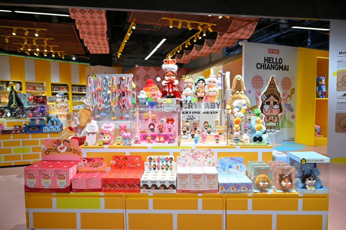 ไฮไลต์สำคัญใน POP MART POP-UP STORE @ Central Chiangmai คือการเปิดตัวคาแรกเตอร์ประจำสาขา ได้แก่ CRYBABY HELLO THAILAND พร้อมกับจุดเช็คอิน CRYBABY HELLO THAILAND BIG FIGURE และ BIG LABUBU บริเวณหน้าศูนย์การค้า เพื่อให้ชาวป๊อปได้เก็บภาพประทับใจแบบไม่รู้เบื่อ และเอาใจสายช้อปด้วยไอเท็มใหม่ล่าสุด อย่างพวงกุญแจ CRYBABY Wild but Cutie Series ที่เปิดตัวไปล่าสุดนี้ ส่วนพวงกุญแจ Labubu ก็ขนทัพมาให้ทุกท่านได้เป็นเจ้าของครบทั้ง 3 เวอร์ชั่น อีกทั้งพวงกุญแจคาแรคเตอร์ฮิต แอคเซสซอรีคาแรคเตอร์ฮอต ก็พร้อมให้ชาวป๊อปนำไปมิกซ์แอนด์แมตช์ให้เป็นสไตล์ของตัวเองอย่างมั่นใจ ปิดท้ายด้วยเหล่าศิลปิน ดารา นักแสดงแฟนคลับ POP MART อาทิ บุ๊คโกะ-ธนัชพันธ์ บูรณาชีวาวิไล, รัศมีแข ฟ้าเกื้อล้น, แนท-อนิพรณ์ เฉลิมบูรณะวงศ์ และ น้ำตาล-ชลิตา ส่วนเสน่ห์ ที่มาร่วมนำเสนอป๊อปแฟชั่นในงานเปิดตัวนี้อีกด้วย