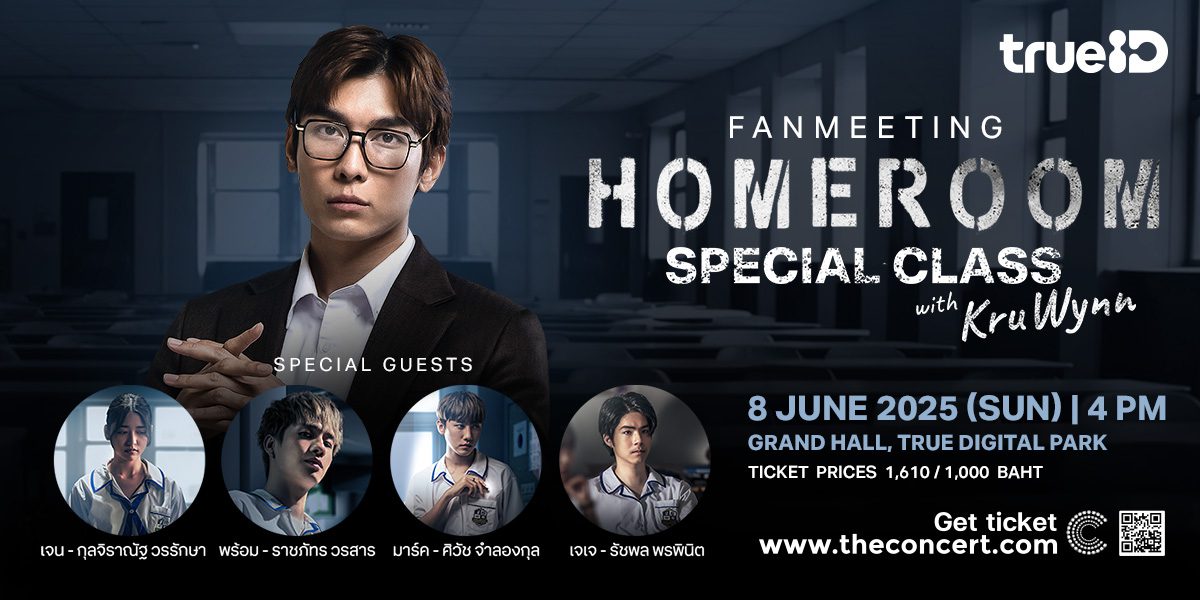 ทรูไอดี ชวน แฟนๆ ซีรีส์ “Homeroom 29 ตัวประกัน”เข้าคลาสพิเศษในงาน “Homeroom Special Class with Kru Wynn Fan Meeting” วันอาทิตย์ที่ 8 มิถุนายน 2568 ซื้อบัตรได้แล้ววันนี้ทางแอปพลิเคชั่นหรือเว็บไซต์ The Concert https://bit.ly/4mc4AcM