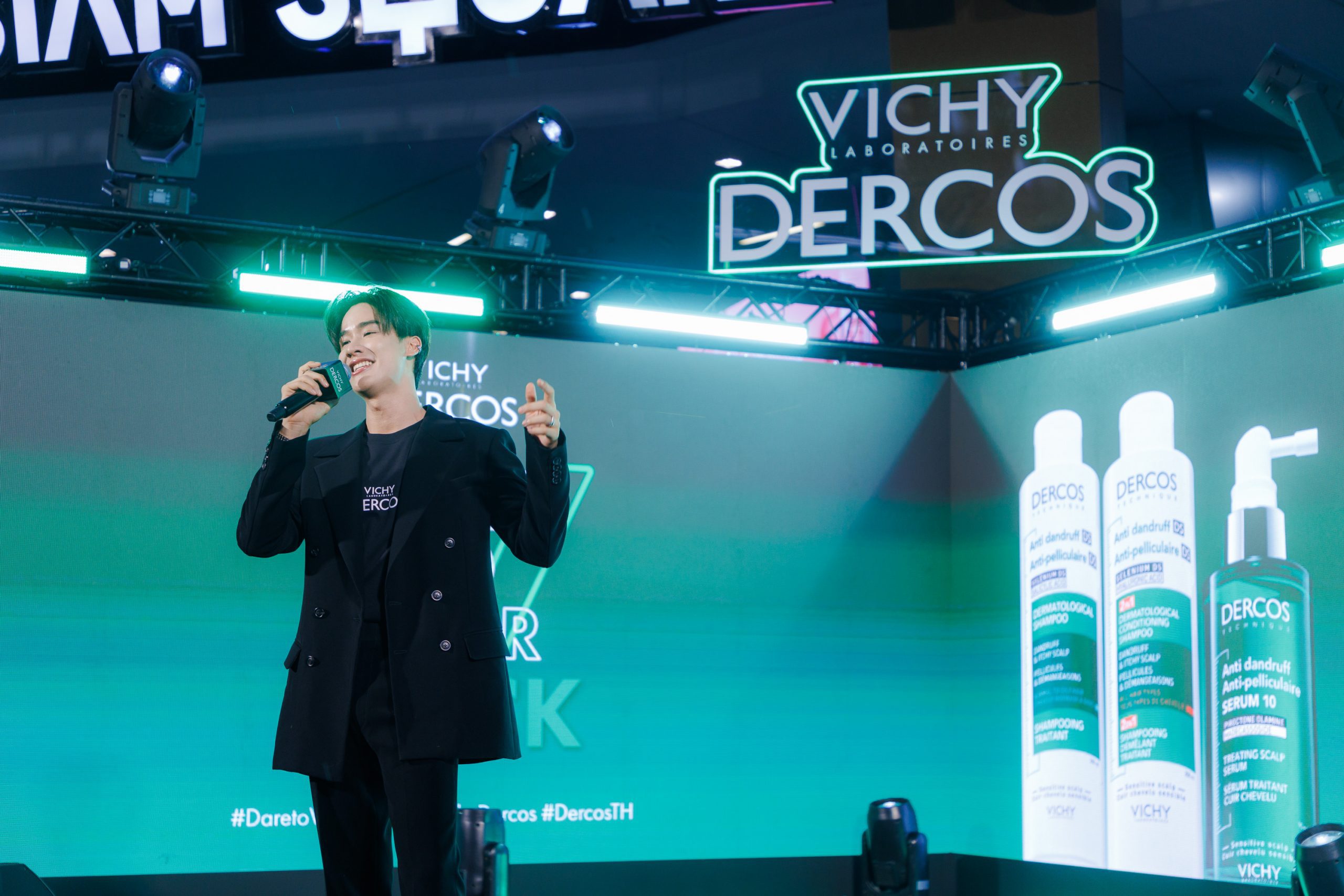 อีกทั้งยังมีการเปิดตัว Scalp Consult PRO เครื่องตรวจหนังศีรษะเฉพาะของ Vichy Dercos เทคโนโลยีล้ำสมัยที่ช่วยวิเคราะห์สภาพหนังศีรษะและเส้นผมได้อย่างแม่นยำและแนะนำผลิตภัณฑ์ที่ตอบโจทย์แต่ละบุคคลได้อย่างถูกต้อง โดยมี คุณเต – ตะวัน วิหครัตน์ Friend of Vichy Dercos นำทุกคนร่วมงานเพื่อเผยลุคดำมั่นใจไร้กังวลปัญหารังแค พร้อมด้วยนักแสดงชื่อดัง อาทิ คุณเอมี่ – ทสร กลิ่นเนียม และ คุณบอนนี่ – ภัทราภัสร์ โบรัชตะสุวรรณ์ ในครั้งนี้ ณ ลานทางเชื่อมสถานีรถไฟฟ้า BTS สยาม ที่ Siam Square One ชั้น 3