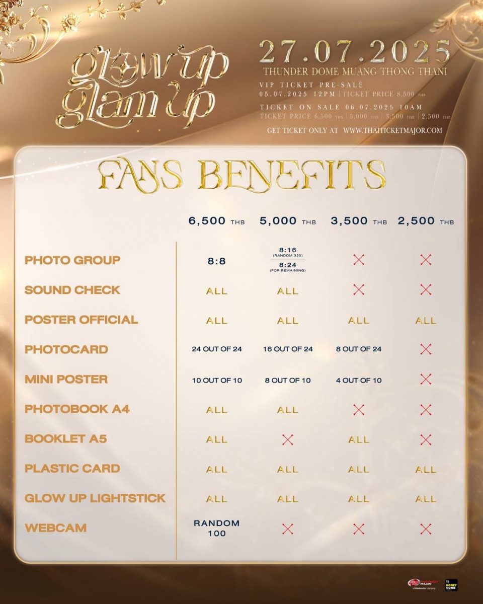 พบกับคอนเสิร์ตสุดพิเศษที่จะพาทุกๆ คน ย้อนความทรงจำ กับ 8 สาว “แก้ว-ณัฐรุจา , น้ำหนึ่ง- มิลิญ ,เนย- กานต์ธีรา,ตาหวาน-อิสราภา , ปูเป้-จิรดาภา ,เจนนิษฐ์ -เจนนิษฐ์ , เจน- กุลจิราณัฐ และ โมบายล์ – พิมรกัส ” ที่มาร่วมตัวกันพร้อมการเติบโตขึ้น ครั้งหนึ่งพวกเธอเป็นแค่ “เด็กสาวแห่งความฝัน” แต่ตอนนี้ได้เติบโตเป็นหญิงสาวที่เปล่งประกาย เฉิดฉายความงดงาม คอนเสิร์ตในครั้งนี้เป็นการรวบรวมมิตรภาพที่แสนสวยงาม อยากที่โชว์ให้แฟนๆ ได้เห็นถึงศักยภาพที่พัฒนามากยิ่งขึ้นของทุกๆ คน พร้อมที่จะถ่ายทอดความเป็นตัวเองออกมาให้แฟนๆ ได้เห็น งานนี้ทั้ง 8 สาว ยังช่วยกันเลือก ทั้งเพลง ทั้งโชว์ และท่าเต้นที่แต่ละคนชื่นชอบ เตรียมพร้อมรอชมกับโชว์ที่จัดเต็ม หรูหรา สมฐานะอย่างแน่นอน และเต็มเปี่ยมไปกับการเติบโตของทั้ง 8 สาว ในงาน “GLOW UP GLAM UP CONCERT” วันอาทิตย์ที่ 27 กรกฎาคม 2568 เวลา 18:00 น. ณ ธันเดอร์โดม เมืองทองธานี