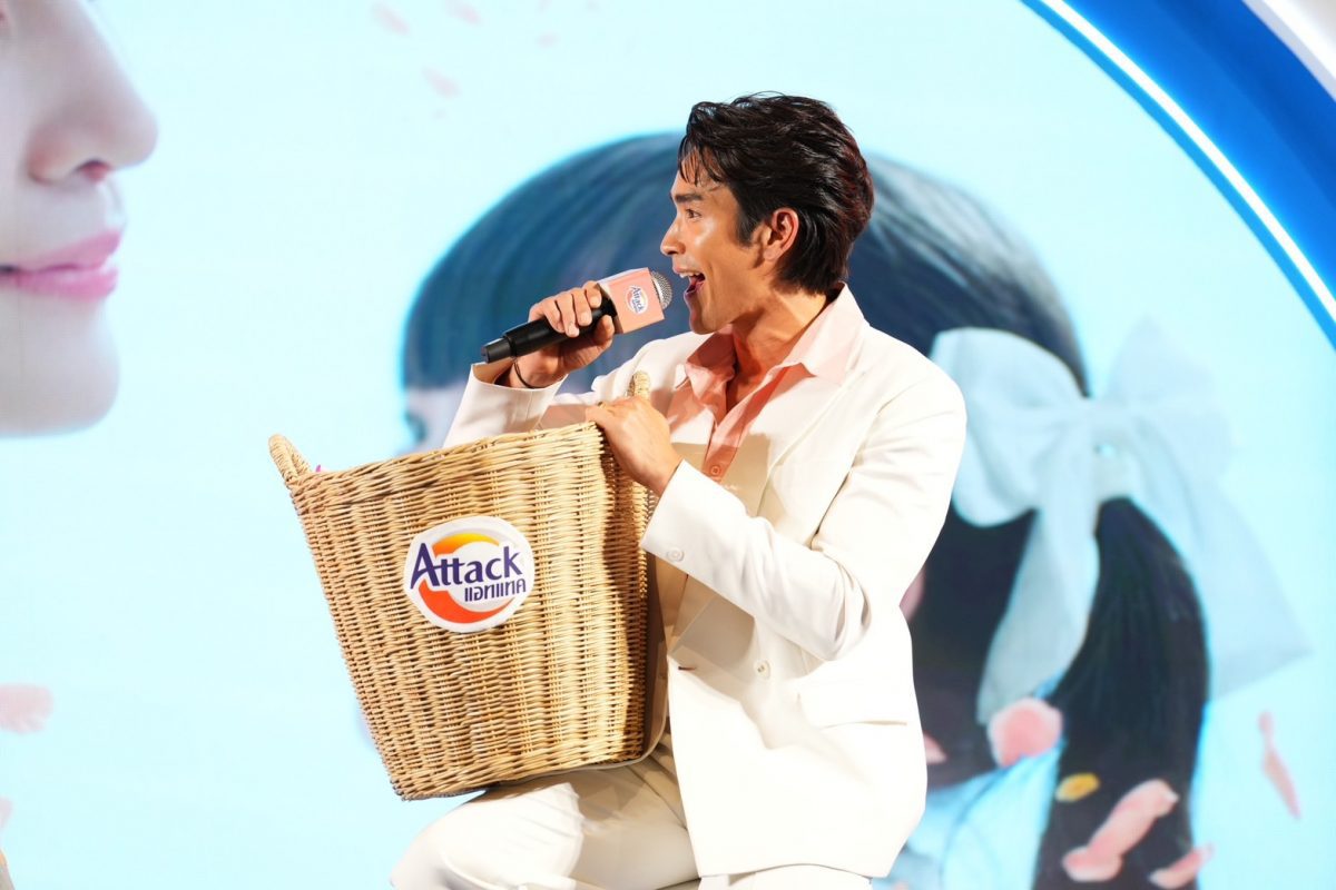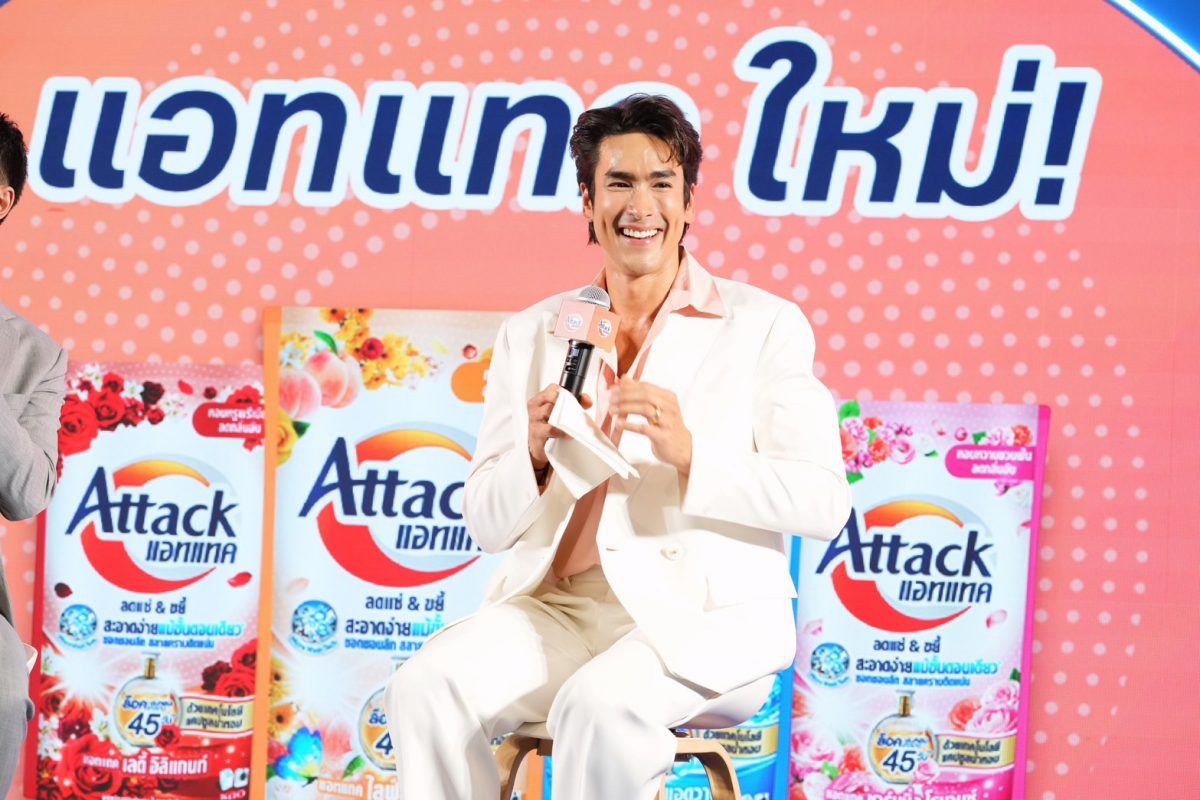 ณเดชน์ คูกิมิยะ กล่าวว่า “หลังจากที่ผมเดินถือตะกร้าผ้าทั่วเมือง ใคร ๆ ก็รู้ว่าผมถนัดเรื่องงานซัก แต่พอเจอแอทแทคใหม่ชีวิตยิ่งง่ายกว่าเดิม ขั้นตอนเดียวก็ขจัดคราบสะอาดหมดจด ไม่ต้องแช่ ไม่ต้องขยี้ เสื้อผ้าหอมนานถึง 45 วันเลยครับ แล้วยังมีเทคโนโลยีแคปซูลน้ำหอมที่หอมฟุ้งทุกครั้งที่ขยับ อยากให้ทุกคนได้ลองใช้กันนะครับ เพราะเป็นตัวช่วยให้การซักผ้าให้สะดวกสบาย และเป็นเรื่องง่ายมากขึ้นจริง ๆ ครับ”