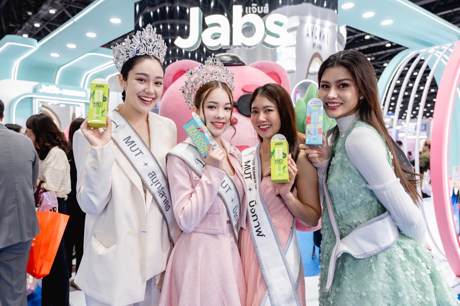 นอกจากนี้บูธ Jabs ยังคึกคักด้วยการปรากฏตัวของ คุณออน สมฤทัย และเหล่าสาวงาม Miss Universe Thailand 2025 จากจังหวัดสมุทรสาครและบึงกาฬ มาสะท้อนความมั่นใจและผิวดีสไตล์ Jabs ให้ทุกคนได้ใกล้ชิด พร้อมด้วย คุณฉัตร จาก Nongchat Makeup ที่มาร่วมชมบูธและลองใช้เมกอัพของทางแบรนด์ Jabs อีกด้วย