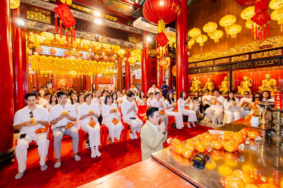 ก่อนที่ช่วงสายชาวคณะ “ไลโอ (LYO)” เดินทางสู่ถนนเยาวราช เพื่อเสริมพลังความปัง ความเฮงตลอดทั้งปีกันที่ วัดเล่งเน่ยยี่ หรือ วัดมังกรกมลาวาส โดยหมอช้าง จัดทำพิธีความเชื่อให้ชุดใหญ่ เป็นการเสริมสิริมงคล ปัดเป่าภัยอันตราย พร้อมพาไหว้องค์เทพ ตามจุดต่าง ๆ และที่สำคัญคือ ทุกคนที่ร่วมคณะ ได้รับพรจากท่านเจ้าอาวาส วัดเล่งเน่ยยี่