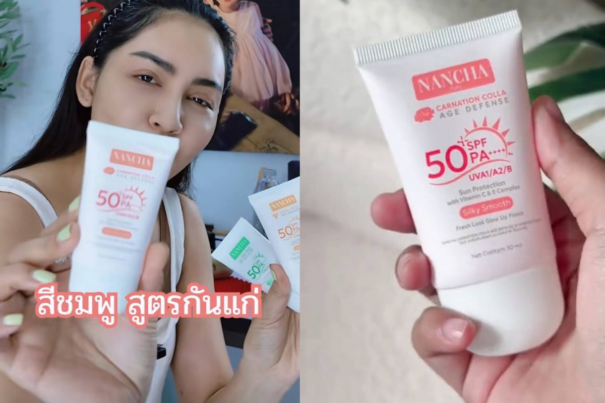 3. นันช่า คาร์เนชั่น คอลล่า เอจ ดีเฟนส์ ซัน โพรเทคชั่น (NANCHA CARNATION COLLA AGE DEFENSE SUN PROTECTION) พัฒนาขึ้นสำหรับผู้ที่มีความกังวลเรื่องริ้วรอย เนื้อครีมแบบใยไหม ผสานดอกคาร์เนชั่นญี่ปุ่น, Edelweiss ฝรั่งเศส และวิตามิน C&E จากเยอรมนี เนื้อสัมผัสบางเบา ไม่เป็นคราบ ไม่ตกร่อง ใช้ก่อนแต่งหน้าได้ดี เหมาะกับผู้ที่มองหาการดูแลผิวพร้อมกันแดดในขั้นตอนเดียว