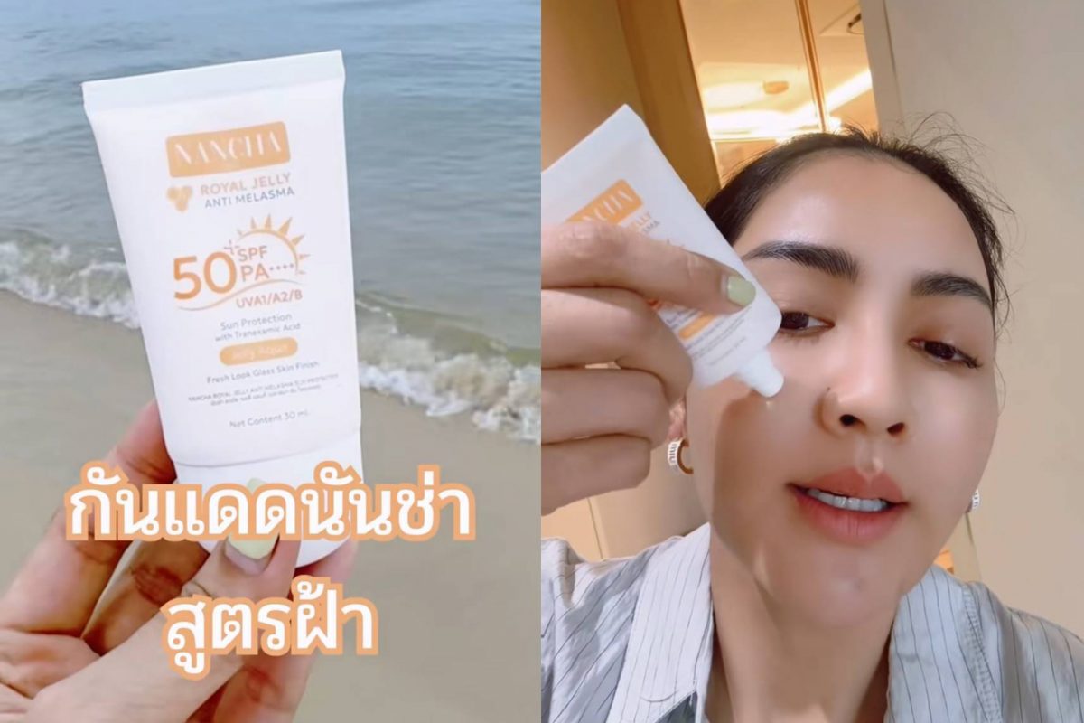 1. นันช่า รอยัล เจลลี่ แอนตี้ เมลาสมา ซัน โพรเทคชั่น (NANCHA ROYAL JELLY ANTI MELASMA SUN PROTECTION) – พัฒนาขึ้นสำหรับผู้ที่มีความกังวลเรื่องฝ้าและจุดด่างดำ เนื้อเจลลี่สูตรน้ำ บางเบา แห้งไว มีสารสกัดนมผึ้งจากญี่ปุ่น สารสกัดลูกพีช และ Tranexamic Acid ที่ช่วยให้ผิวดูสว่างกระจ่างใส