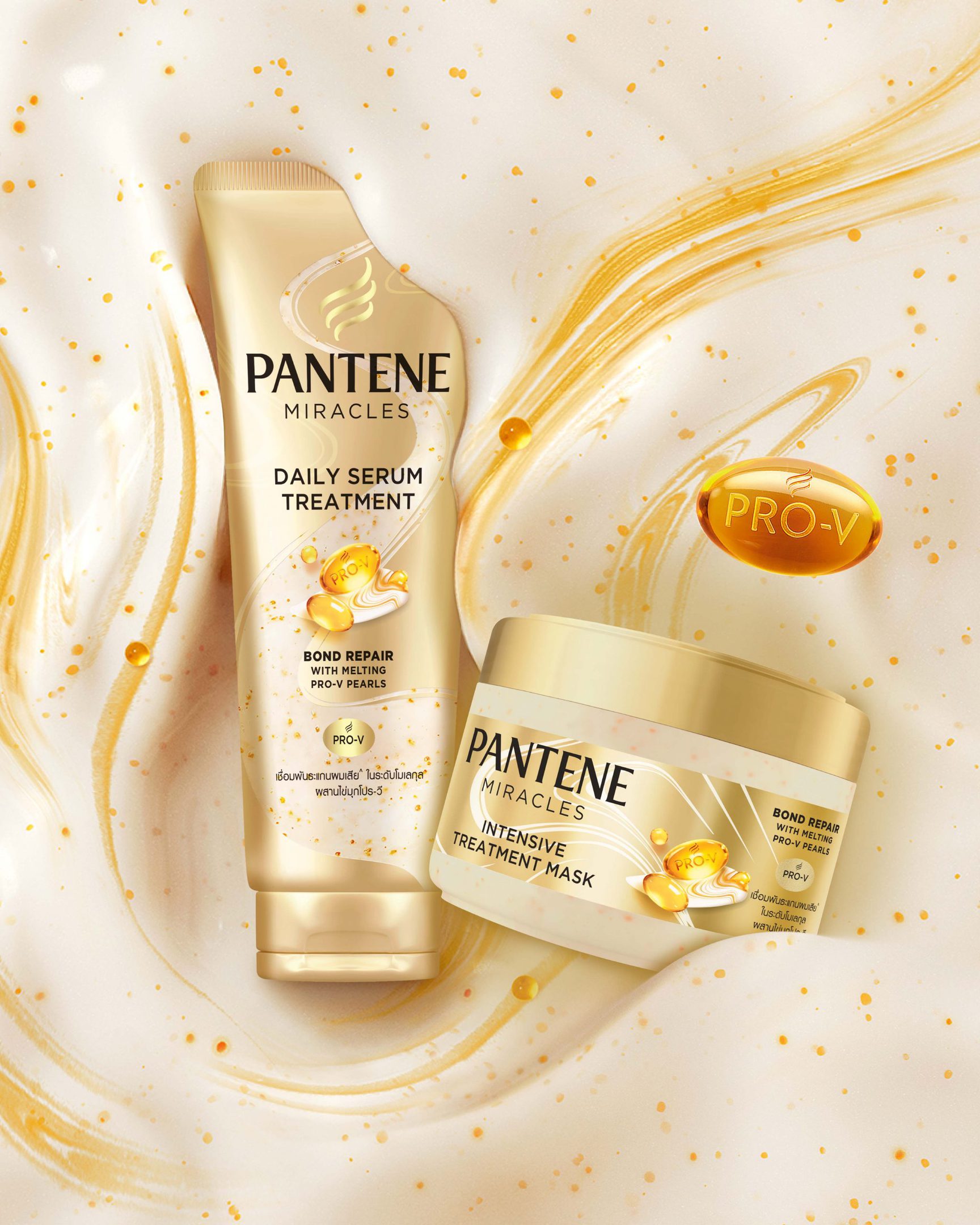 งานครั้งนี้ PANTENE ตอกย้ำความเป็นผู้นำด้านวิทยาศาสตร์เส้นผมระดับโลก เผยเบื้องหลังตำนานแห่งพลังการบำรุงจาก Vitamin B5 หรือ Panthenol ที่ค้นพบตั้งแต่สมัยสงครามโลกครั้งที่ 2 ก่อนพัฒนาสู่ Pro-V สารอาหารผมทรงพลังที่พิสูจน์แล้วว่าสามารถซึมลึกถึงโครงสร้างชั้นโปรตีนของเส้นผมเพื่อซ่อมแซมจากภายในอย่างแท้จริง และวันนี้แพนทีนได้ยกระดับอีกขั้น สู่นวัตกรรมใหม่ล่าสุดที่พัฒนาอย่างต่อเนื่องกว่า 7 ปี ภายใต้ชื่อว่า “Melting Pro-V Pearls” หรือ ไข่มุกโปร-วี ที่สามารถกักเก็บสารอาหารผมในรูปแบบเม็ดไข่มุก ทำให้สามารถใส่โปร-วิตามิน (Pro-V) ที่มีเฉพาะแพนทีน และลิพิด ที่เปรียบเสมือนกล้ามเนื้อของเส้นผมได้เข้มข้นถึง 5 เท่า พร้อมรักษาความสดใหม่ของสารอาหารผมได้ยาวนาน ตั้งแต่วันแรกที่ผลิตจนถึงวินาทีที่ใช้ ผ่านคุณสมบัติไข่มุกโปร-วี ที่ละลายทันทีเมื่อสัมผัสน้ำ จึงปลดปล่อยโมเลกุล Pro-V พร้อมลิพิด และสารอาหารผมนับล้านโมเลกุลเข้าฟื้นบำรุงสู่โครงสร้างผมเสียได้อย่างตรงจุด ไม่ว่าผมของคุณจะเสียแค่ไหน แห้ง ชี้ฟู เปราะบาง ขาดง่าย หรือเสียสะสมมาเป็นเวลานานหลายปี ทรีทเม้นท์สูตรใหม่ PANTENE MIRACLES TREATMENT WITH MELTING PRO-V PEARLS สามารถ “คืนชีพ” เส้นผมให้กลับมามีชีวิตใหม่ได้อย่างแท้จริง ผ่านทรีทเม้นท์ 2 สูตรให้เลือกใช้ตามไลฟ์สไตล์