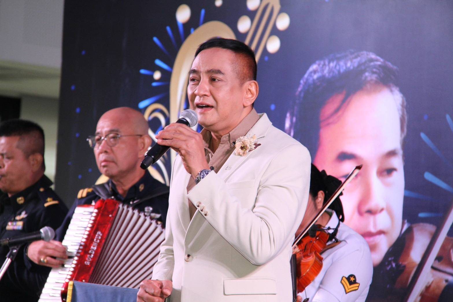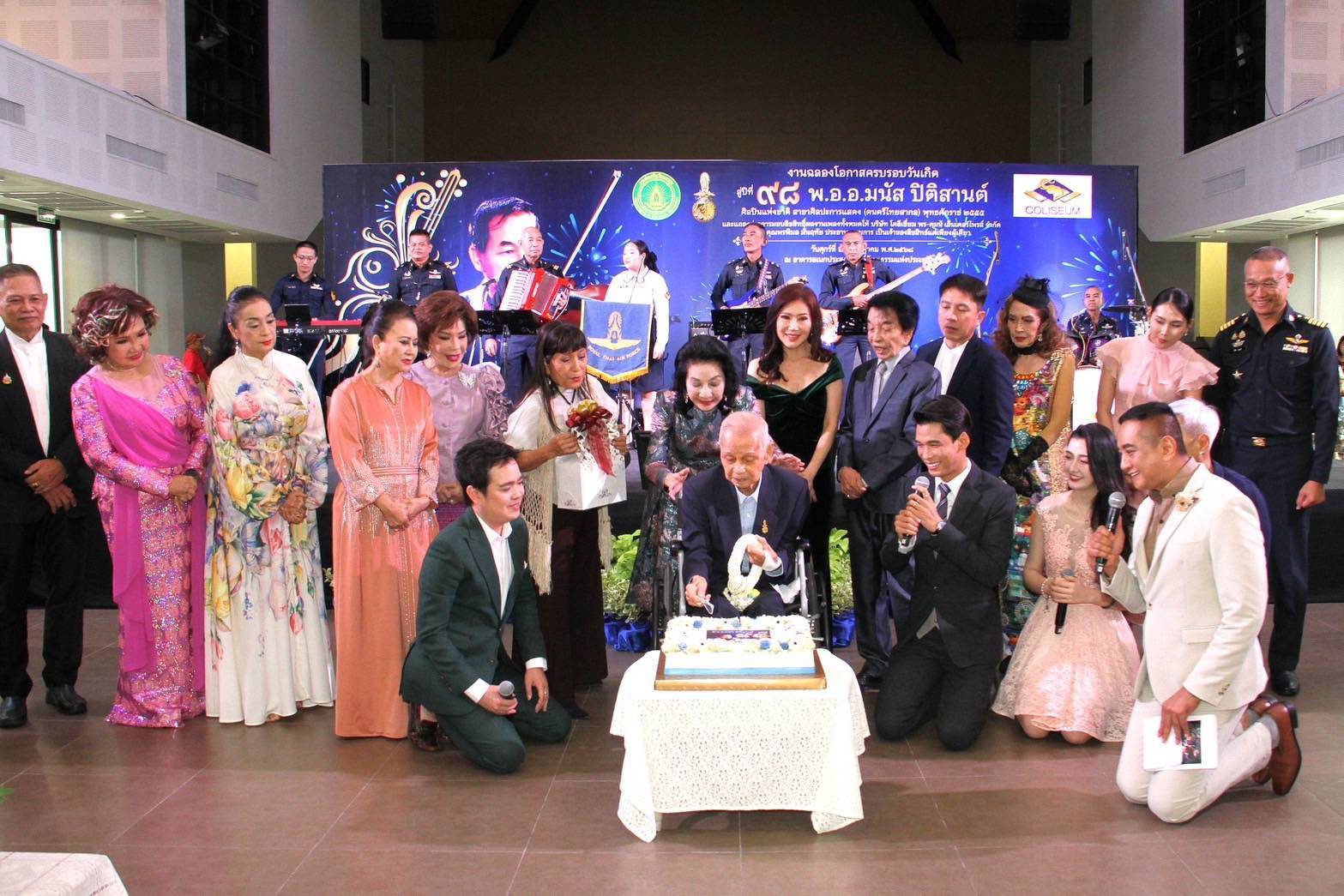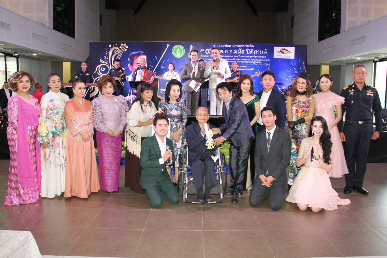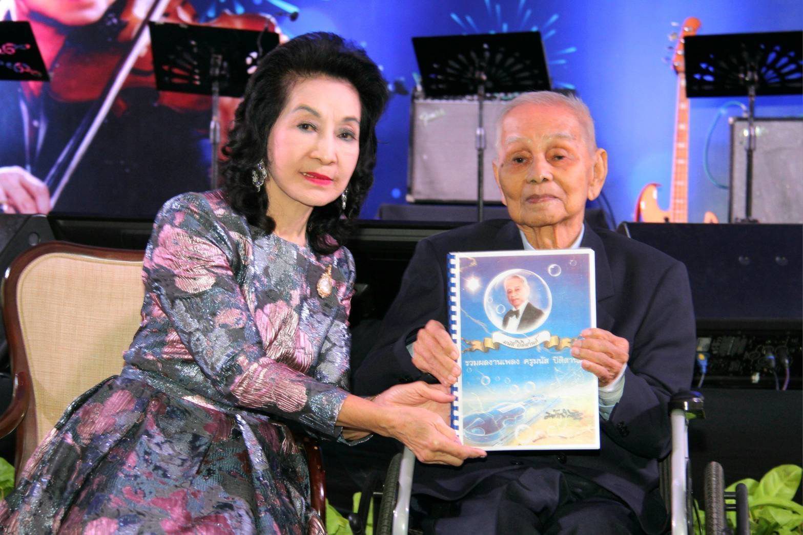 ภายในงานนอกจากเป็นการเซ็นสัญญามอบลิขสิทธิ์เพลงแล้ว ยังมีงานเลี้ยงวันคล้ายวันเกิดให้กับครูมนัสด้วย โดยมีลูกศิษย์มาร่วมกันร้องเพลงของครูให้แขกที่มาในงานได้ฟังด้วย ซึ่งแต่ละเพลงเป็นที่รู้จักและคุ้นหูกันเป็นอย่างดี เริ่มต้นด้วยเสียงร้องของ ไอติม-กัลยรัตน์ กรสุทธินันท์ ด้วยเพลง “ฝนรักฝนเศร้า” ตามมาด้วย อุมาพร บัวพึ่ง กับบทเพลง “เพื่อเธอที่รัก”, โฉมฉาย อรุณฉาน ร้องเพลง “เธอ”, สปาย-ภาสกรณ์ รุ่งเรืองเดชาภัทร์ ร้องเพลง “ปรารถนา“, เท่ห์-อุเทน พรหมมินทร์ ร้องเพลง “สามปอยหลวง”, ภูริวัจน์ บุญสุยา ร้องเพลง “ละอองดาว”, อลิศ-ธนัชศลักษณ์ ฮัดสัน ร้องเพลง “ดาวพระศุกร์”, ดาวใจ ไพจิตร ร้องเพลง “ฝันกลางฤดูฝน”, สุดา ชื่นบาน (ศิลปินแห่งชาติ) ร้องเพลง ”หุ่นไล่กา“ (เจ้าของเสียงเพลงต้นฉบับ), อรวี สัจจานนท์ ร้องเพลง ”คืนคำรัก“, แอ๊ค-โชคชัย หมู่มาก ร้องเพลง ”ไม่มีเสียงเรียกจากใจ“, รุ่งฤดี แพ่งผ่องใส ร้องเพลง ”เปลวไฟรัก“, จิตติมา เจือใจ ร้องเพลง ”ระฆังใจ“, นัดดา วิยกาญจน์ ร้องเพลง “เสน่หา” (เจ้าของเสียงเพลงต้นฉบับฝ่ายหญิง) และ ธานินทร์ อินทรเทพ ร้องเพลง “เหมือนคนละฟากฟ้า” (เจ้าของเสียงเพลงต้นฉบับ) จากนั้นนักร้องทุกคนมาร่วมร้องเพลงวันเกิดให้กับ ครูมนัส ปิติสาสน์ และถ่ายภาพร่วมกันเป็นที่ระลึก