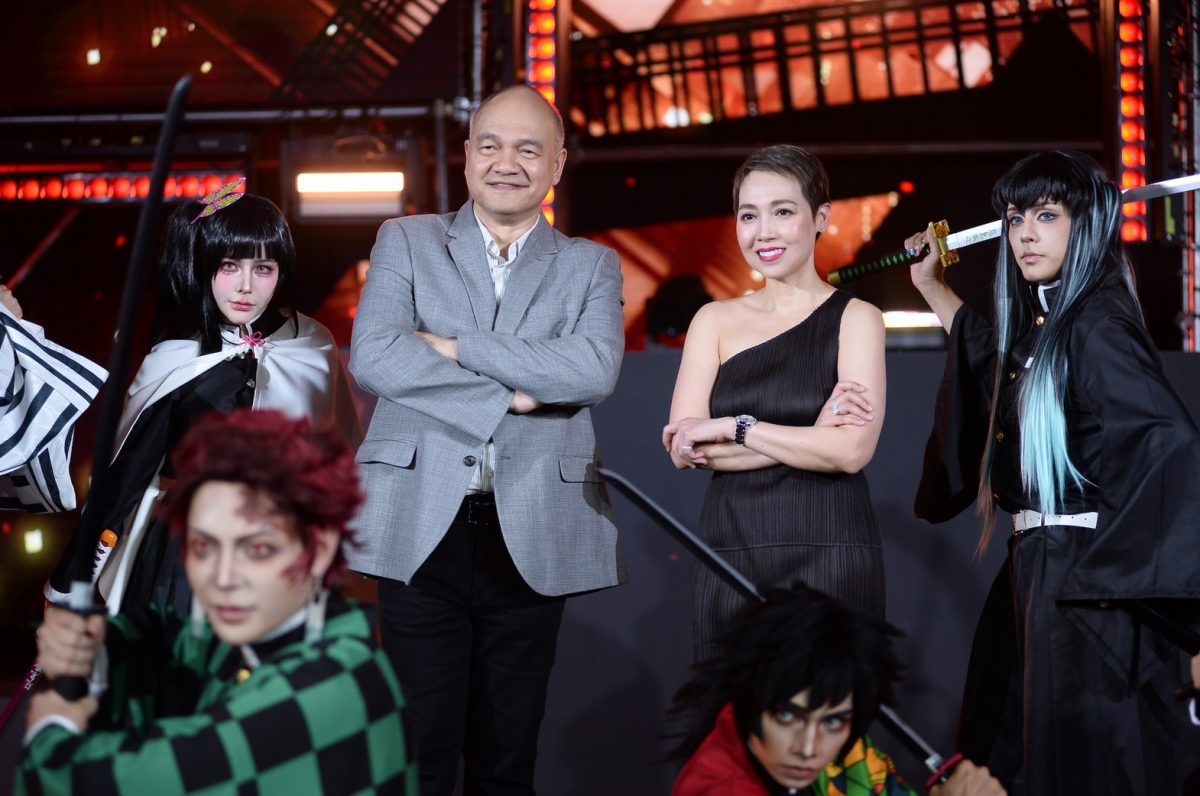 ต่อด้วยการเชิญผู้ที่นำปรากฏการณ์ความยิ่งใหญ่ของ “DEMON SLAYER: INFINITY CASTLE – ดาบพิฆาตอสูร ภาคปราสาทไร้ขอบเขต” มาให้แฟนๆชาวไทยได้ชมกันในโรงภาพยนตร์ กรรมการและผู้อำนวยการใหญ่ บริษัท โซนี่ พิคเจอร์สเอ็นเตอร์เทนเมนต์ (ประเทศไทย) จำกัด คุณรชต ธีระบุตร กล่าวต้อนรับแฟนๆ และสื่อมวลชนที่มาร่วมงาน ตามมาด้วยเหล่านักพากย์ระดับเสาหลักของไทย ขึ้นมาพูดคุยเกี่ยวกับการทำงานและความประทับใจที่ได้เป็นส่วนหนึ่งในการพากย์เสียงไทยให้กับอนิเมะแห่งชาติเรื่องนี้ ได้แก่ คุณเก้า-เฉลิมพล แพทย์คดี (ทันจิโร่), คุณม็อบ-กิตติธร พันธ์โคกกรวด (เซ็นอิตสึ), คุณปลาย-พิพัฒน์ บุญสิทธิเลิศ (มุอิจิโร่), คุณบอส-อภิชิตลิขิตลิ้มปรีชา (อาคาสะ), และคุณรตา-รตา ชินกระจ่างกิจ (โคยูกิ) ที่ทำให้แฟนๆใจฟูไปกับการพากย์เสียงสดๆ เล็กๆ น้อยๆ ให้ฟังก่อนที่จะเข้าไปชมภาพยนตร์กัน