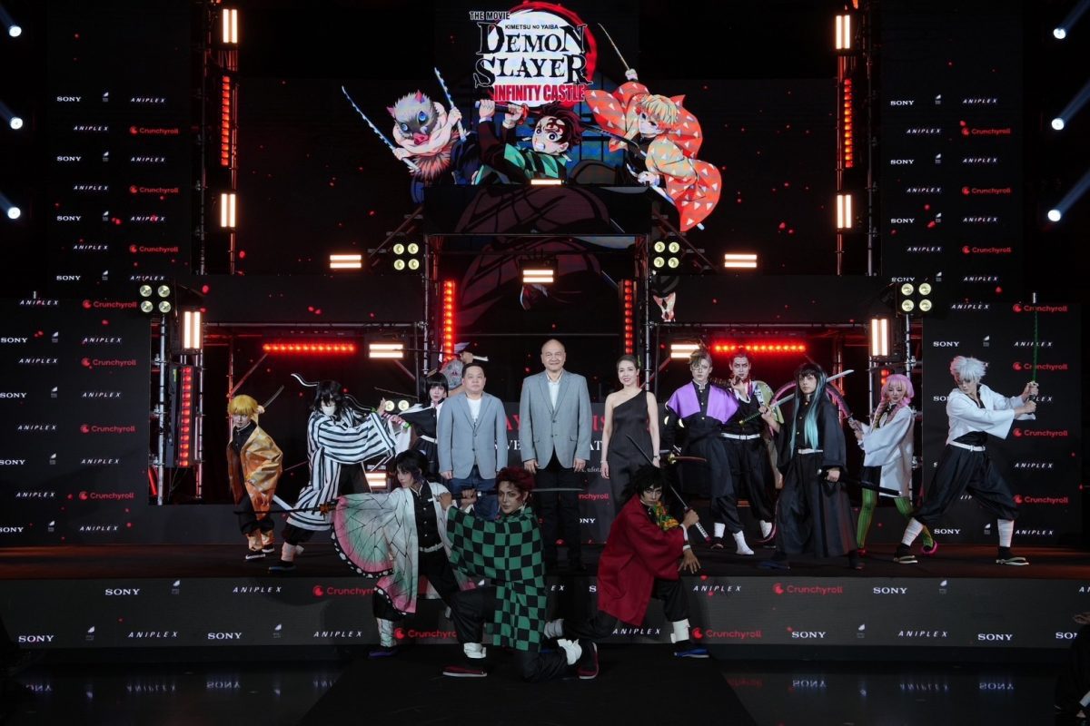 สิ้นสุดการรอคอย บริษัท โซนี่ พิคเจอร์ส (เอ็นเตอร์เทนเมนต์) ประเทศไทย จำกัด ทุ่มสุดพลังจัดงานเปิดตัวรอบปฐมทัศน์ภาพยนตร์อนิเมะที่ยิ่งใหญ่ที่สุดที่แฟนๆ ทั่วโลกรอคอย “DEMON SLAYER: INFINITY CASTLE – ดาบพิฆาตอสูร ภาคปราสาทไร้ขอบเขต” ณ โรงภาพยนตร์ พารากอน ซีนีเพล็กซ์สยามพารากอน ต้อนรับวันหยุดวันแม่แห่งชาติ โดยมีสื่อมวลชน แขกผู้มีเกียรติ แฟนหนัง และเหล่าคอสเพลย์มาร่วมงานอย่างคับคั่ง ด้วยโชว์สุดพิเศษจากนักแสดงที่มาในคาแรคเตอร์ของตัวละครเหล่านักล่าอสูรและเสาหลัก โดยมีฉากหลังเป็นปราสาทไร้ขอบเขตที่เปลี่ยนไปตลอดเวลา เสมือนเรากำลังดำดิ่ง ร่วงหล่น ไปอย่างไม่มีที่สิ้นสุดเช่นเดียวกับเหล่าตัวละคร ซึ่งโชว์ชุดนี้ได้ใจแฟนๆ และแขกที่มาร่วมงานไปเต็มๆ