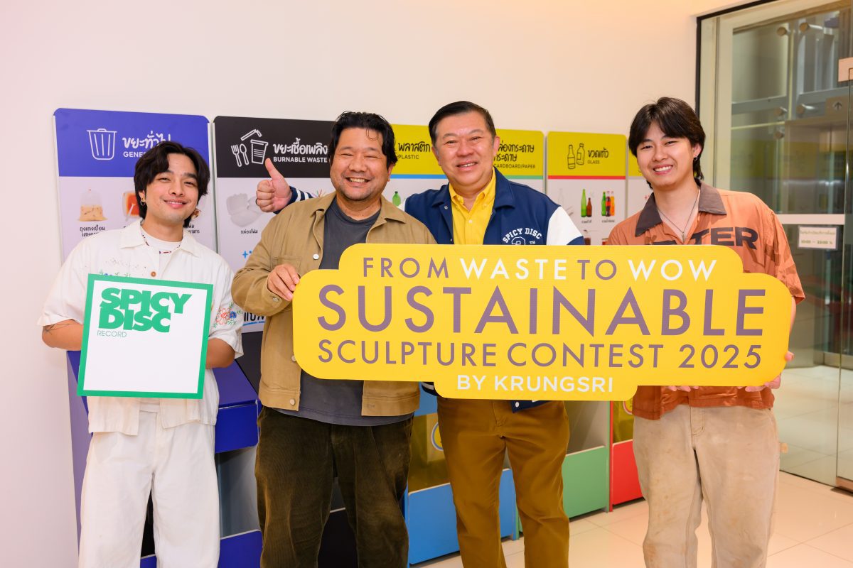 คุณพิชัย จิราธิวัฒน์ กรรมการผู้จัดการ บริษัท สไปร์ซซี่ ดิสก์ จำกัด พร้อม คุณมิ่งขวัญ พัฒนวงศ์ ผู้ช่วยกรรมการผู้จัดการใหญ่ ผู้บริหารสายงานบริหารแบรนด์และการตลาดองค์กร ธนาคารกรุงศรีอยุธยา จำกัด (มหาชน) และ คุณณัฏฐมณี เลขวณิชกุล ผู้อำนวยการอาวุโส ผู้บริหารฝ่ายกิจกรรมการตลาดองค์กร ธนาคารกรุงศรีอยุธยา จำกัด (มหาชน) ประกาศความร่วมมือจัดกิจกรรม “From Waste to WOW Sustainable Sculpture Contest 2025 By Krungsri” การประกวดออกแบบประติมากรรมศิลปะน้องกล้วยกรุงศรี จากวัสดุรีไซเคิล ให้คนรุ่นใหม่ได้คิดอย่างสร้างสรรค์เกี่ยวกับความรับผิดชอบต่อสิ่งแวดล้อมผ่านศิลปะและการออกแบบ มุ่งมั่นในการสร้างความยั่งยืน โดยมีศิลปินชื่อดัง บอย-ตรัย ภูมิรัตน ศิลปินวง PURPLECAT ม่อน-นภสินธุ์ ไชยศรี และ ปาล์ม-พลรัตน์ ศิริรัตน์ ร่วมเป็นสักขีพยาน ณ อาคารเซ็นทรัล ทาวเวอร์ แอท เซ็นทรัล เวิลด์