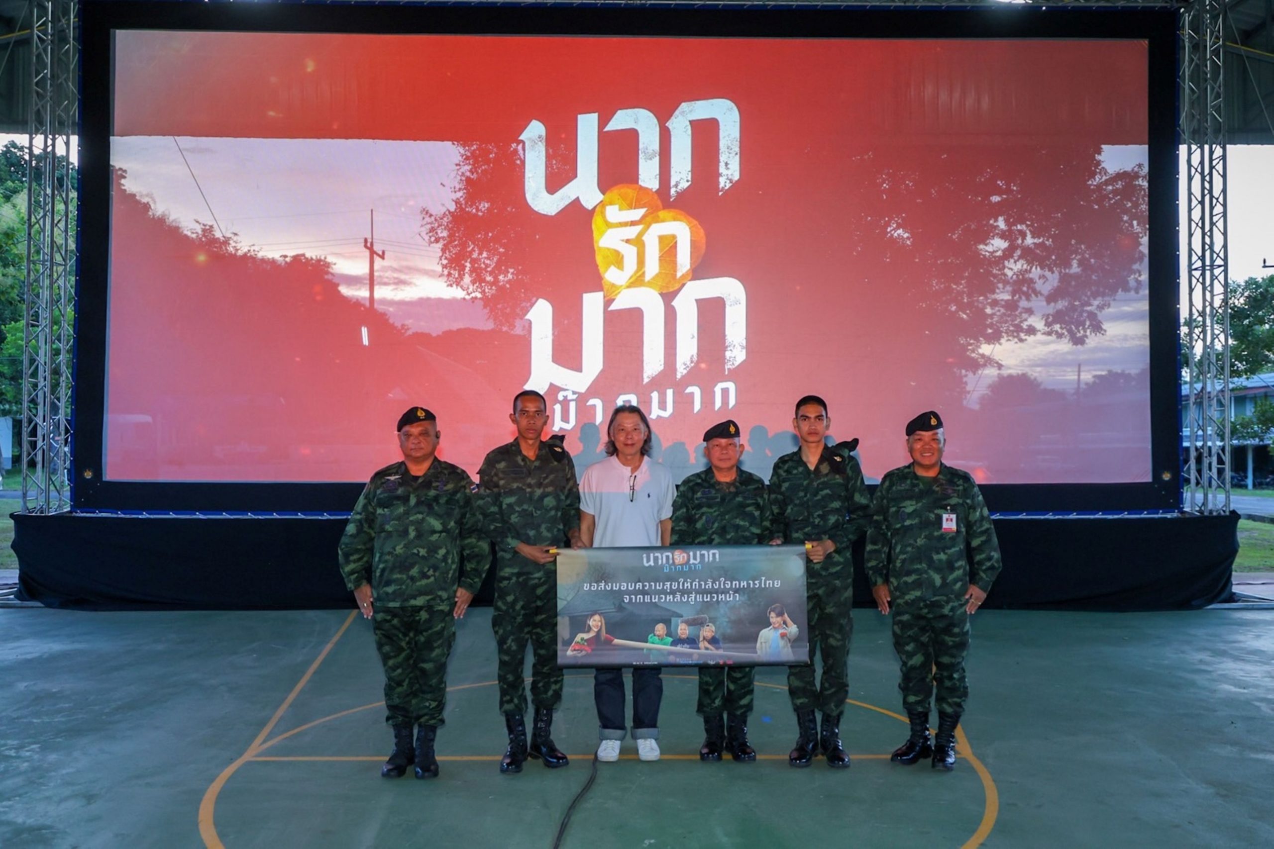 ล่าสุดเมื่อวันจันทร์ ที่ 11 สิงหาคม 2568 ที่ผ่านมา บริษัท แบล็ค ดรากอน เอ็นเตอร์เทนเม้นท์ จำกัด นำโดย คุณพรชัย ว่องศรีอุดมพร กรรมการผู้อำนวยการฝ่ายปฏิบัติการ ได้จัดกิจกรรมส่งมอบความสุขจากแนวหลังสู่แนวหน้านำภาพยนตร์ให้ทหารได้ชมฟรี โดยประสานกับกรมกิจการพลเรือนทหารนำภาพยนตร์ “นากรักมาก ม๊ากมาก” ไปฉาย ณ มณฑลทหารบกที่ 25 (ค่ายวีรวัฒน์โยธิน) จ.สุรินทร์ ค่ายทหารที่เป็นที่พักผ่อนและฝึกซ้อมของทหารแนวหน้าให้ทหารทั้งหลายได้คลายเครียดรับชมภาพยนตร์เป็นการสร้างความสุขส่งมอบกำลังใจ หลังจากเหตุการณ์เริ่มคลี่คลายลง ภายในงานได้รับเกียรติจาก พลตรี ชยพณัฐ วิริรัตน์ รองเจ้ากรมกิจการพลเรือนทหาร กองทัพไทย, นาวาเอก ภูริวัฒ มนสิชาวรกุล ผู้อำนวยการกองบรรเทาสาธารณภัย สำนักปฏิบัติการกิจการพลเรือน กรมกิจการพลเรือนทหาร และ พลตรี ไชยนคร กิจคณะ ผู้บัญชาการ มทบ.25 มาร่วมเป็นประธานเปิดงานอย่างเป็นกันเองและอบอุ่น พร้อมกับคลิปวิดีโอส่งตรงจาก “หม่ำ จ๊กมก” โปรดิวเซอร์หนังเรื่องนี้ได้ส่งคลิปมาให้กำลังใจด้วย ซึ่งบรรยากาศการรับชมภาพยนตร์มีเสียงหัวเราะจากทหารตลอดทั้งเรื่อง ทั้งการจัดฉายหนังกลางแปลงในครั้งนี้ยังได้การสนับสนุนจาก เอนก มงคล และ กลุ่มเพื่อน SVOA ที่นำมาจัดตั้งอุปกรณ์แบบไม่คิดค่าใช้จ่ายใด ๆ ทั้งสิ้น