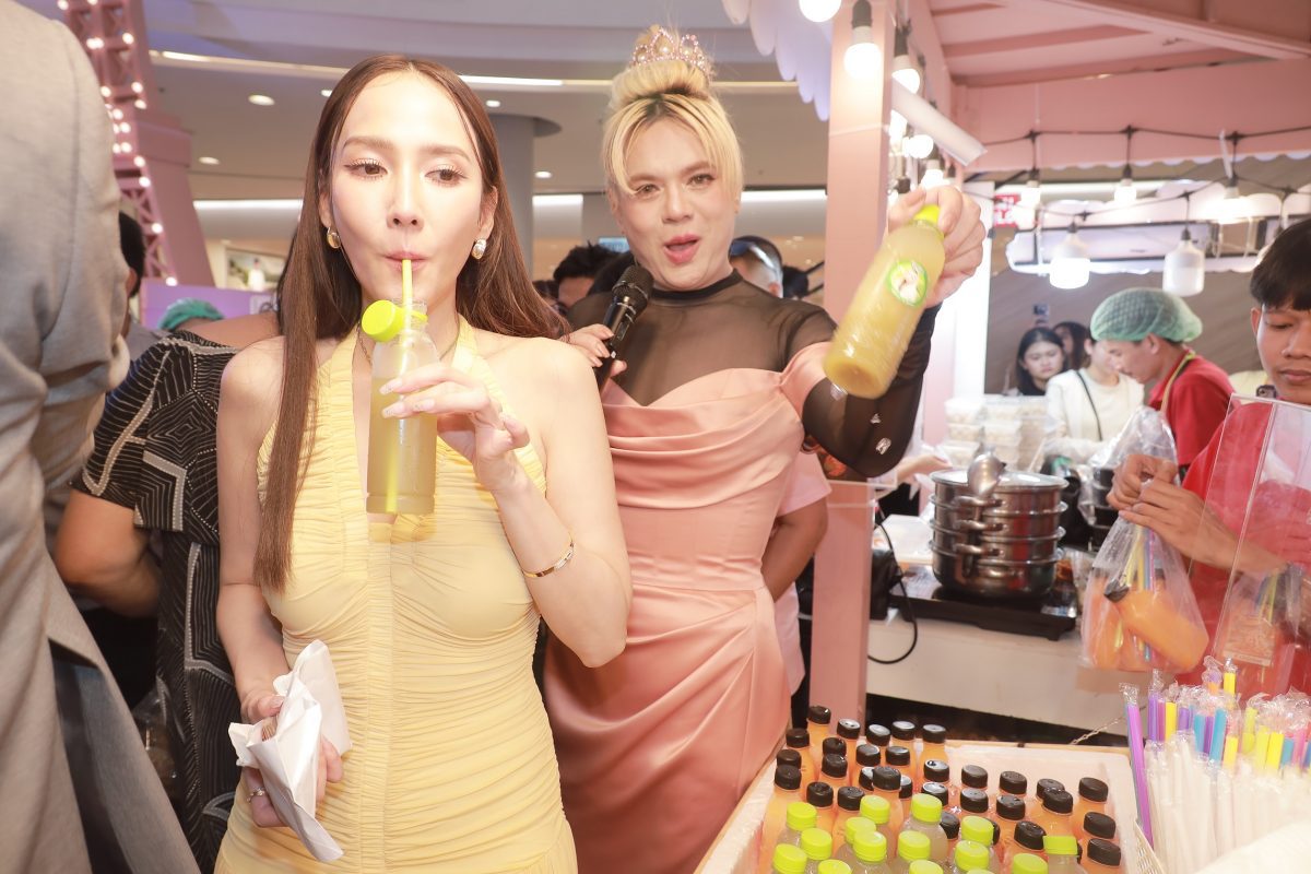 “วันนี้ต้องขอขอบคุณน้องอั้มมากๆ ที่มาช่วยเปิดตลาดเอแฟร์ที่เซ็นทรัล ชลบุรี รู้สึกแฮปปี้ ดีใจมาก มีความสุขมาก ก็ช่วยกันเชียร์ ช่วยกันชวนให้คนมาเดินตลาดทั้ง เอแฟร์ ทั้ง อั้มอั้ม อยากให้ทุกคนมาเดินกันเยอะๆ มีอาหารอร่อยทั่วทุกภาค มีพะโล้