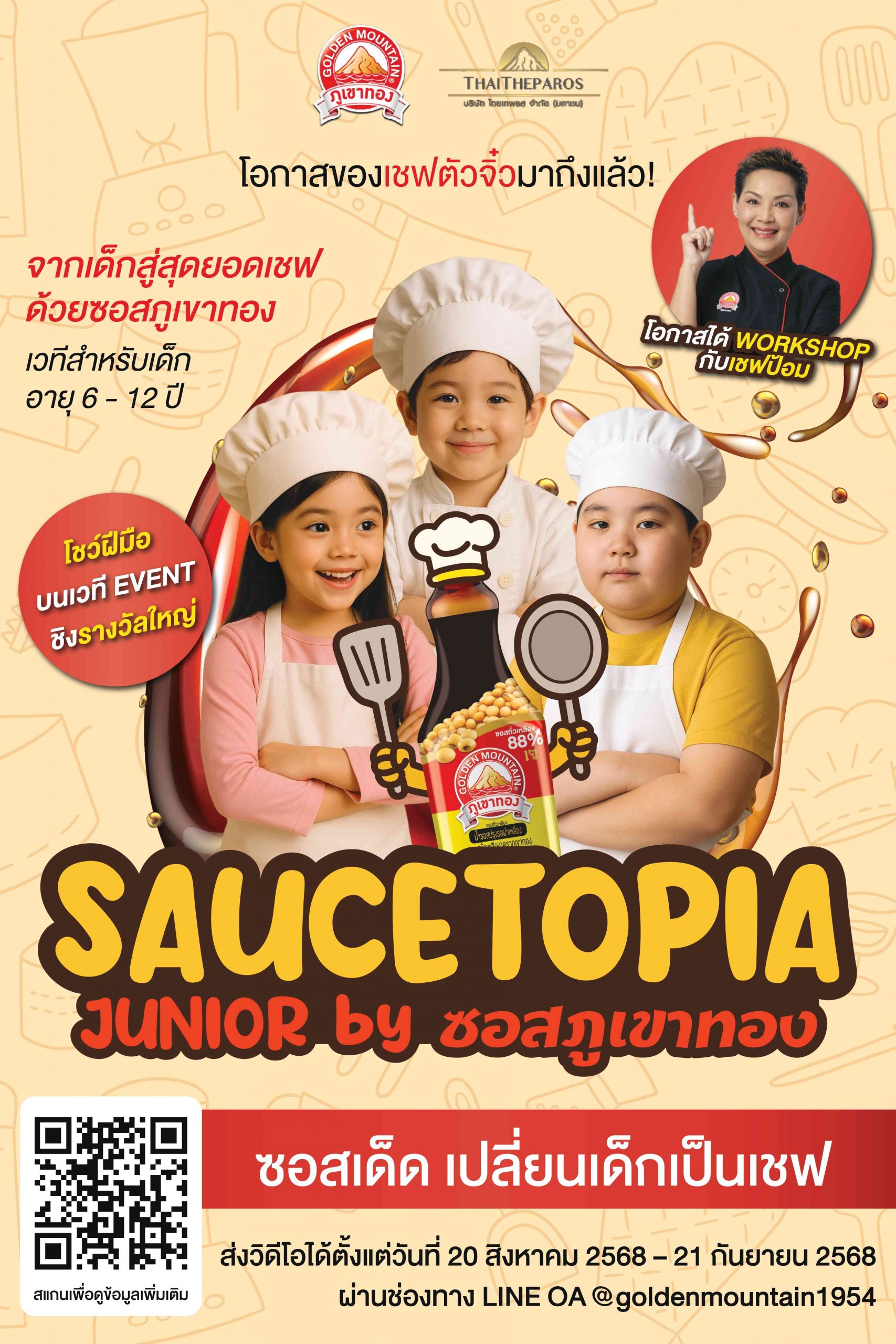 แบรนด์ “ซอสภูเขาทอง” ซอสคู่ใจเชฟตัวน้อย ชวนตกหลุมรักและสนุกไปกับการทำอาหาร เปิดโลกจินตนาการสู่ดินแดน “SauceTopia” by ซอสภูเขาทอง พร้อมค้นหาสุดยอดเชฟ “SauceTopia Junior Contest” เวทีให้เยาวชนอายุ 6-12 ปีทั่วประเทศ ร่วมสร้างสรรค์เมนูอาหารสุดครีเอทีฟโดยใช้ซอสภูเขาทองฝาเหลืองเป็นส่วนประกอบหลัก ชิงของรางวัลรวมมูลค่ากว่า 50,000 บาท (ตามเงื่อนไขที่กำหนด) และโอกาสเข้าร่วมเวิร์คชอปพิเศษกับเชฟป้อม ม.ล.ขวัญทิพย์ เทวกุล