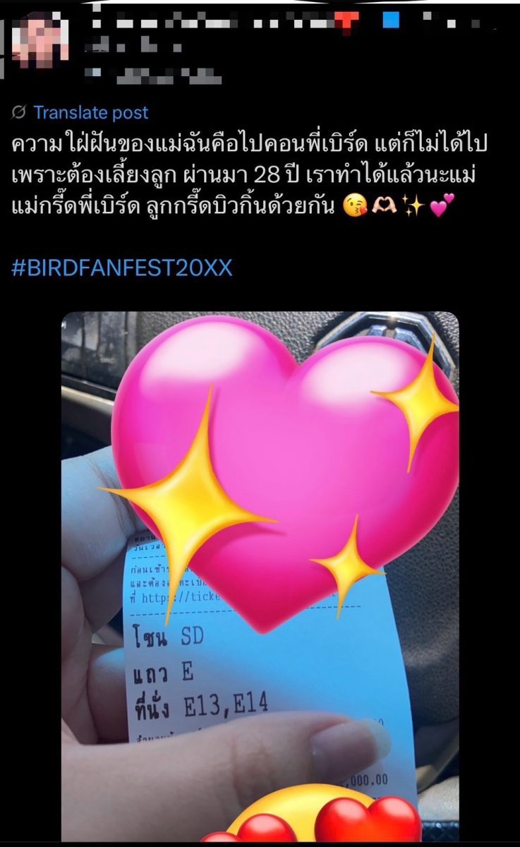 จนล่าสุด พี่เบิร์ดออกมาแสดงความแป็นห่วงผ่านเพจ Bird Thongchai ว่า “สำหรับแฟนๆที่ยังไม่ได้บัตร พี่เบิร์ดเป็นห่วงทุกคน จะกดเองหรือไปที่เซเว่นก็สะดวกมาก อยากให้ไปสนุกด้วยกันนะครับ” เล่นเอาแฟนคอมเม้นท์ขอบคุณความห่วงใยกันถล่มทลายเช่นกัน