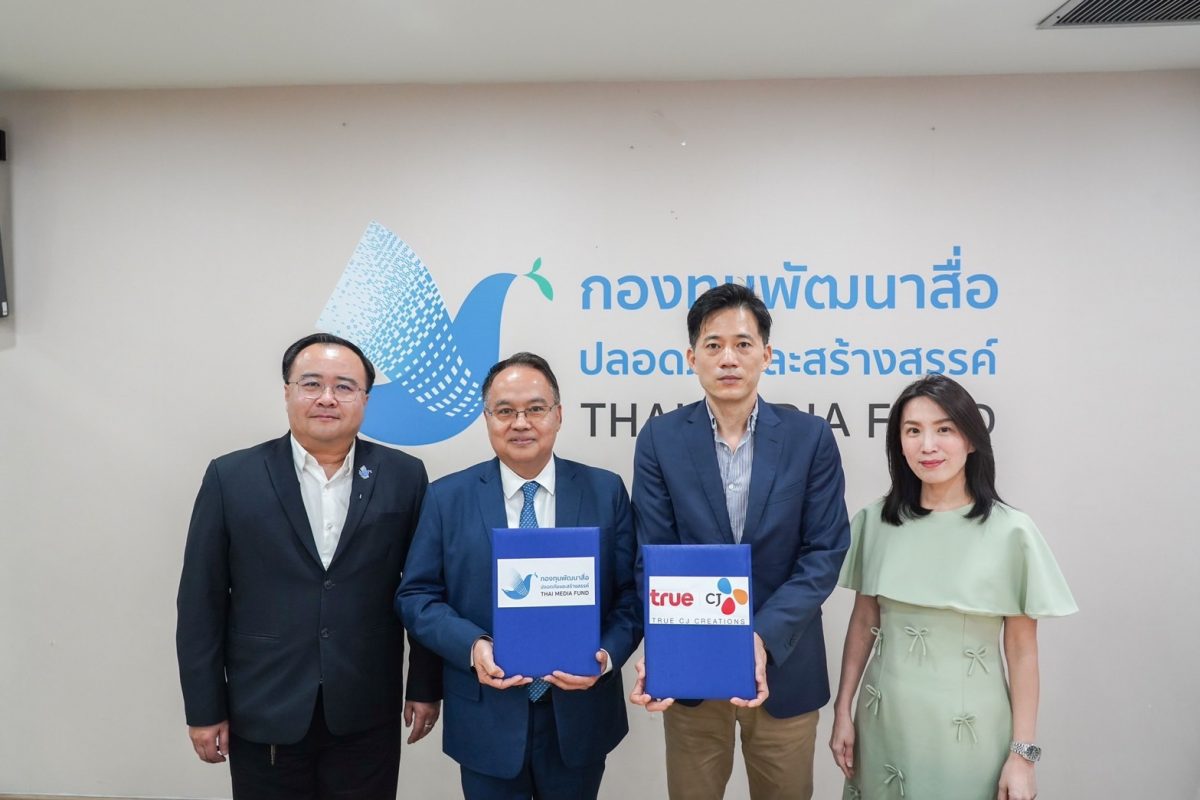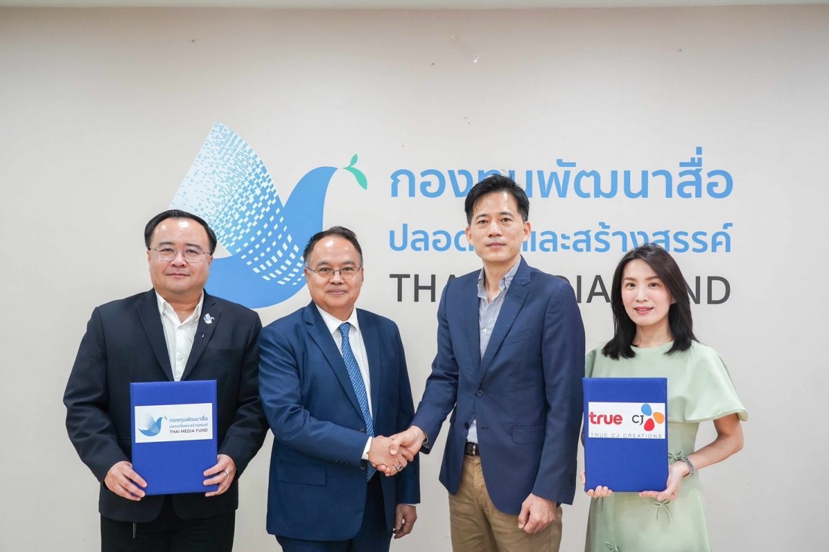 ในพิธีลงนามบันทึก ข้อตกลงความร่วมมือระหว่าง กองทุนพัฒนาสื่อปลอดภัยและสร้างสรรค์ โดย ดร.ธนกร ศรีสุขใส ผู้จัดการกองทุนพัฒนาสื่อปลอดภัยและสร้างสรรค์ และบริษัท ทรู ซีเจ ครีเอชั่นส์ จำกัด โดย คุณไมเคิล จองและคุณอารี อารีจิตเสถียร กรรมการบริษัทและประธานเจ้าหน้าที่บริหาร (ร่วม) พร้อมด้วย ดร.ชำนาญ งามมณีอุดม รองผู้จัดการกองทุนพัฒนาสื่อปลอดภัยและสร้างสรรค์ ได้ให้เกียรติร่วมเป็นสักขีพยาน ในพิธีลงนามดังกล่าวอีกด้วย