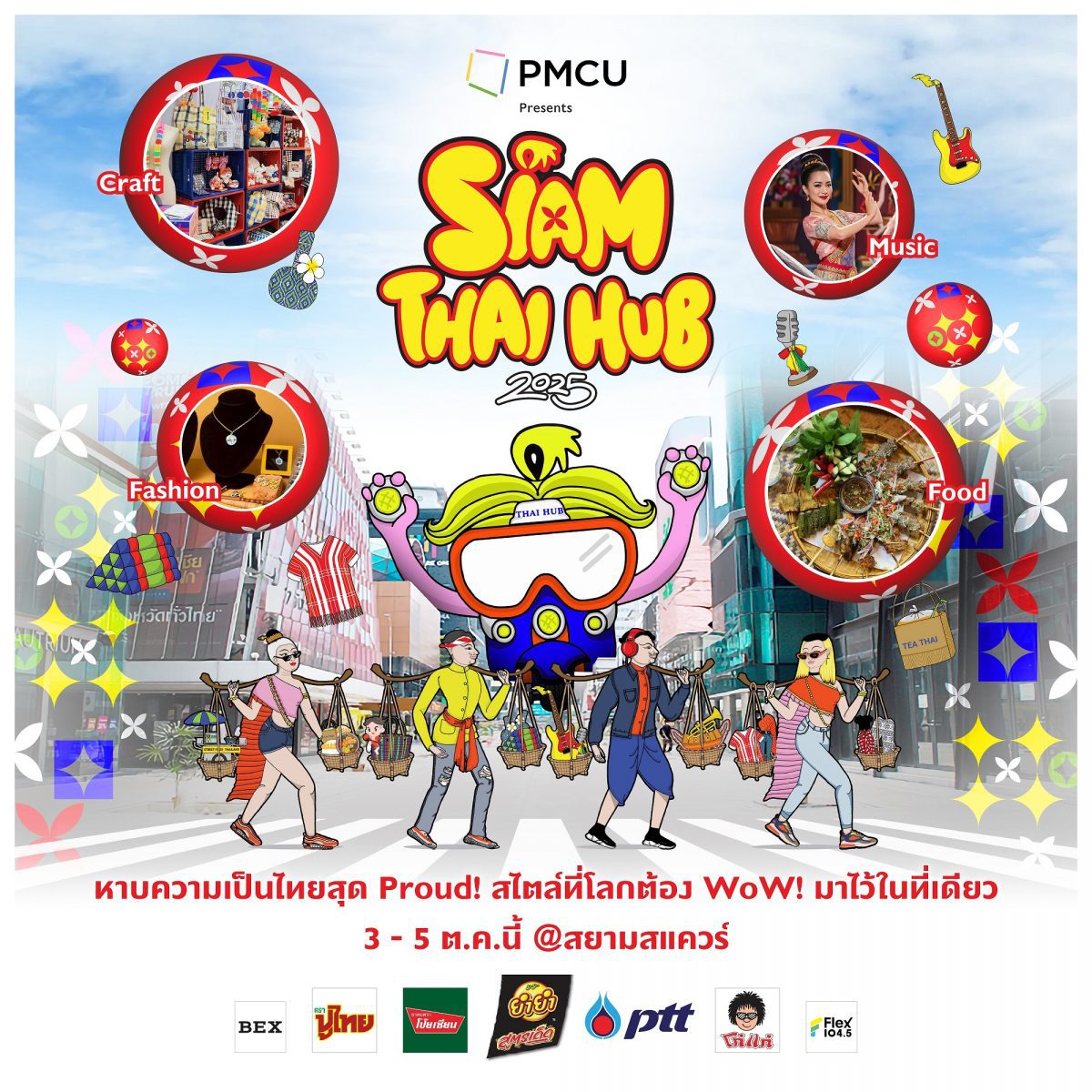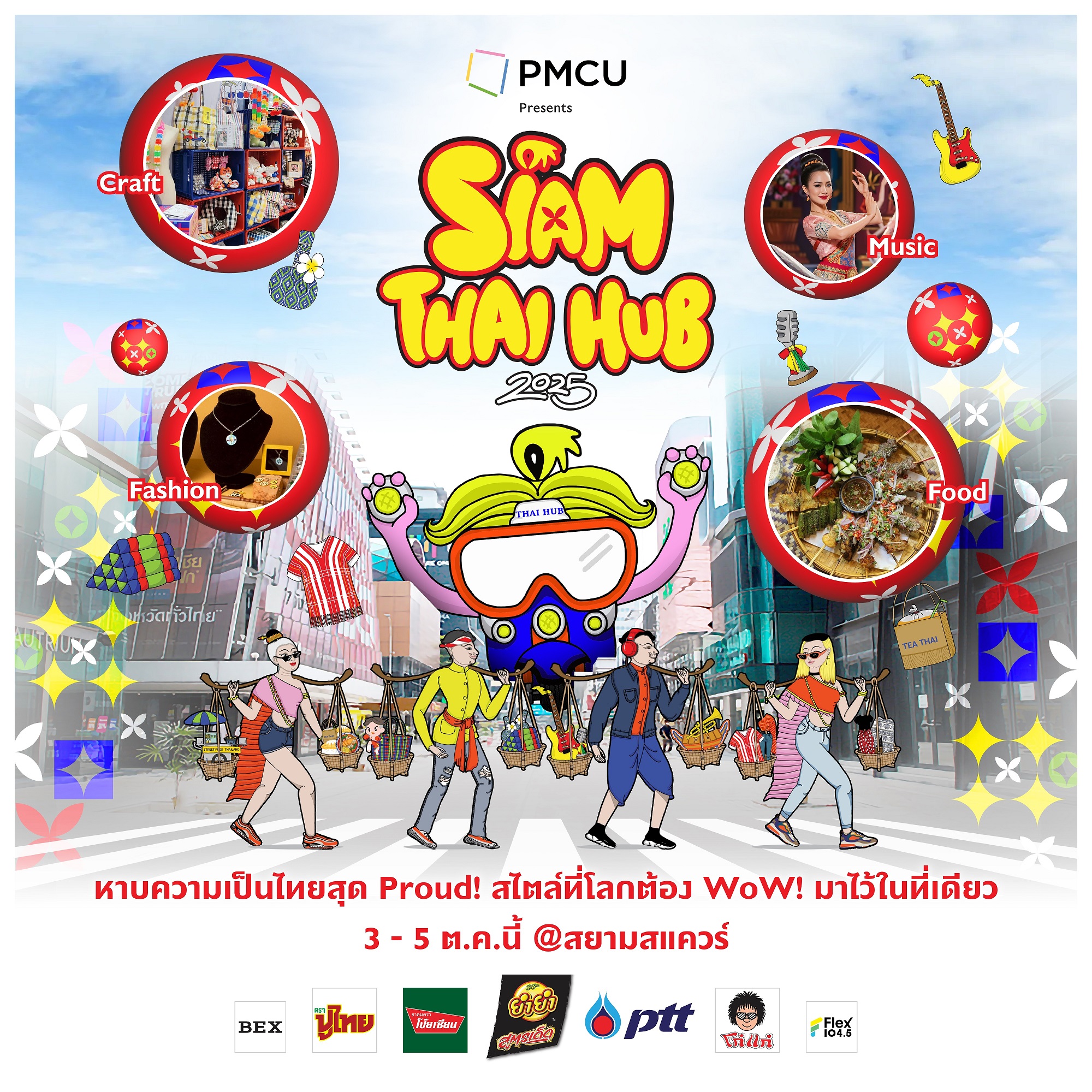 PMCU (สำนักงานจัดการทรัพย์สินจุฬาลงกรณ์มหาวิทยาลัย) ร่วมกับ BEX จัดงาน “PMCU Presents Siam Thai Hub 2025” เทศกาลฮับ (Hub) แห่งวัฒนธรรมไทยสร้างสรรค์ที่ยิ่งใหญ่แห่งปี! รวมทุกพลังสร้างสรรค์ วัฒนธรรมไทยหลากหลายสไตล์ร่วมสมัย Soft Power Sandbox สร้างพื้นที่รวมพลังสร้างสรรค์ไทย เปิดเวทีและพื้นที่ให้คนรุ่นใหม่ ดีไซเนอร์, ศิลปิน, นักแสดง, เชฟ และนักสร้างสรรค์ทุกแขนง ได้แสดงศักยภาพและโชว์ความเป็น Thainess Fever กระตุ้นให้เกิดเทรนด์ และกระแสการนำอัตลักษณ์ความเป็นฮับ (Hub) ของไทย เพื่อส่งเสริมการท่องเที่ยวให้มีชื่อเสียงดังไปทั่วโลก พร้อมเชื่อมโยงเครือข่ายคนรุ่นใหม่กับผู้เชี่ยวชาญในแต่ละ ฮับ (Hub) เพื่อถ่ายทอดและแลกเปลี่ยนองค์ความรู้ในด้านต่าง ๆ