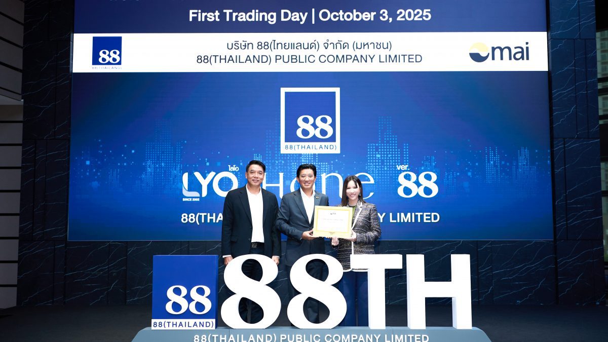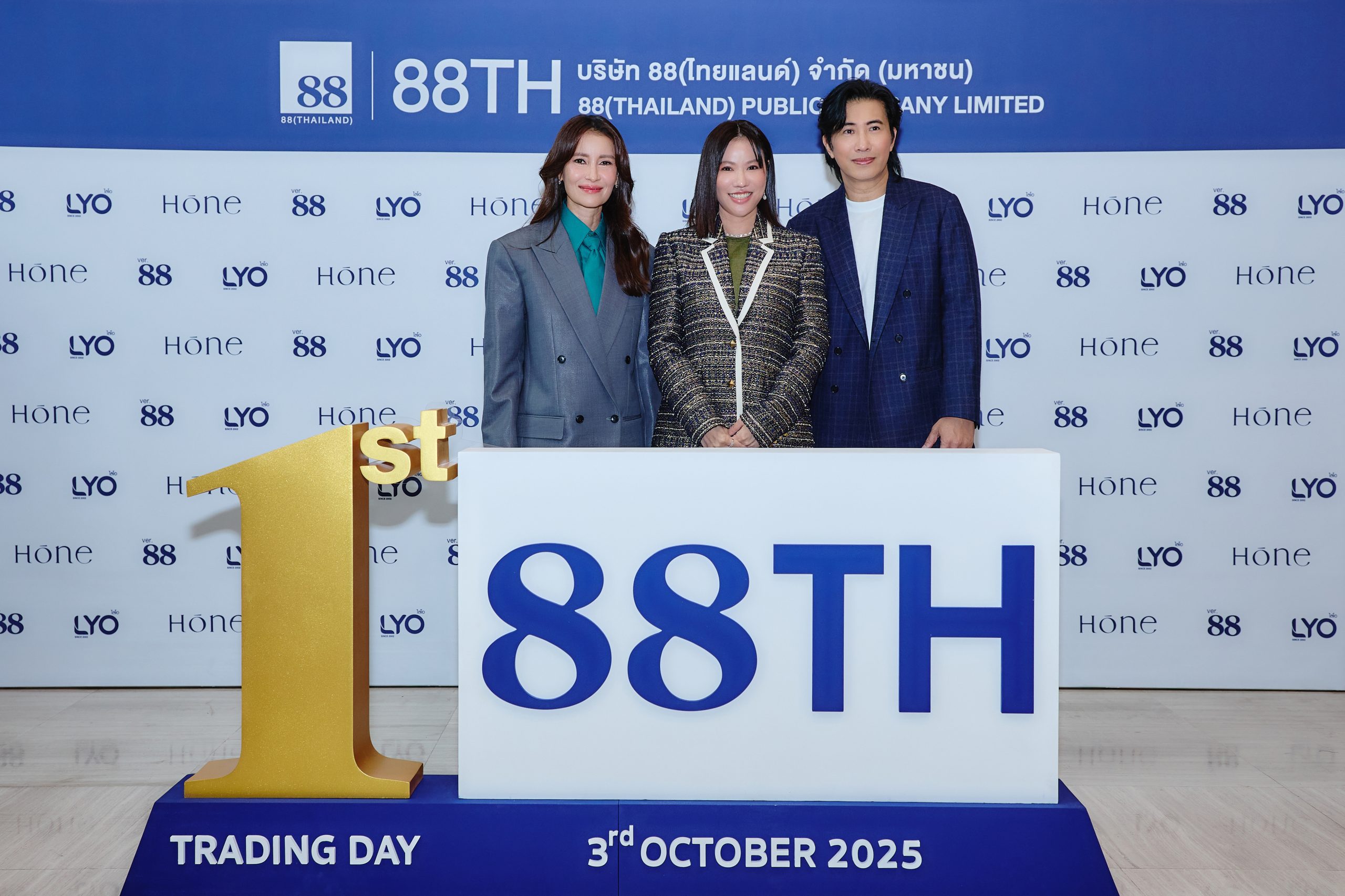 วันที่ 3 ตุลาคม 2568 ถือเป็นอีกหนึ่งวันประวัติศาสตร์ของ บริษัท 88(ไทยแลนด์) จำกัด (มหาชน) หรือ 88TH โดย นพรัตน์ มาลัยวงค์ ผู้ก่อตั้งและกรรมการบริษัท หลังจากประสบความสำเร็จกับผลิตภัณฑ์ดูแลเส้นผมและหนังศีรษะ “LYO” ที่ครองใจผู้บริโภคชาวไทยมากว่า 4 ปี วันนี้ได้ก้าวเข้าสู่การซื้อขายวันแรก (First Day Trade) ในตลาดหลักทรัพย์ mai อย่างเป็นทางการ ในโอกาสพิเศษนี้ “หนุ่ม-กรรชัย กำเนิดพลอย” พาร์ทเนอร์ธุรกิจของ LYO และผู้ประกาศข่าวชื่อดังจากรายการ เที่ยงวันทันเหตุการณ์ และ โหนกระแส เดินทางมาร่วมมอบดอกไม้และแสดงความยินดีกับ นพรัตน์ มาลัยวงค์ อย่างอบอุ่น พร้อมกันนี้ยังมีบุคคลสำคัญจากหลายวงการร่วมแสดงความยินดี อาทิ คุณพาขวัญ วงศ์พลทวี ประธานเจ้าหน้าที่ฝ่ายการตลาดและพันธมิตรธุรกิจ (CMPO) จาก Plan B Media คุณแอน ทองประสม พรีเซ็นเตอร์ “ไลโอ สูตรสมุนไพร” คุณปอนด์ ออนนิว อินฟลูเอนเซอร์ชื่อดัง
