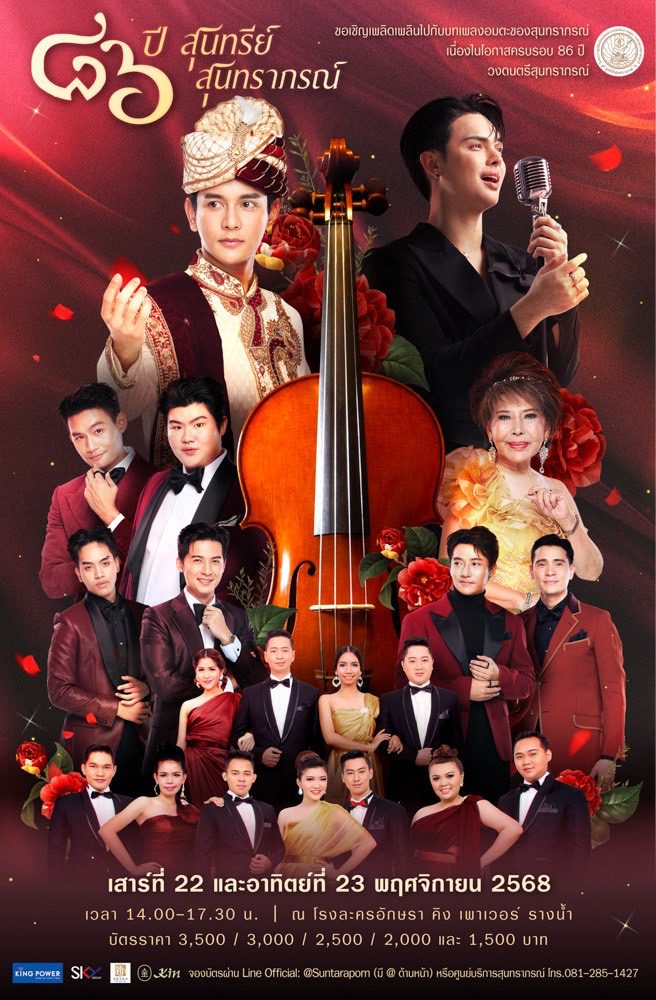 2568 ณ โรงละครอักษราคิงเพาเวอร์ ถนนรางน้ำ โดยจำหน่ายบัตร ในราคา 3,500 3,000 2,500 2,000 และ 1,500 บาท ท่านที่สนใจสามารถจองบัตรและสอบถามรายละเอียดเพิ่มเติมได้ทาง Line Official: @Suntaraporn หรือ ศูนย์บริการสุนทราภรณ์ โทร 081 285 1427