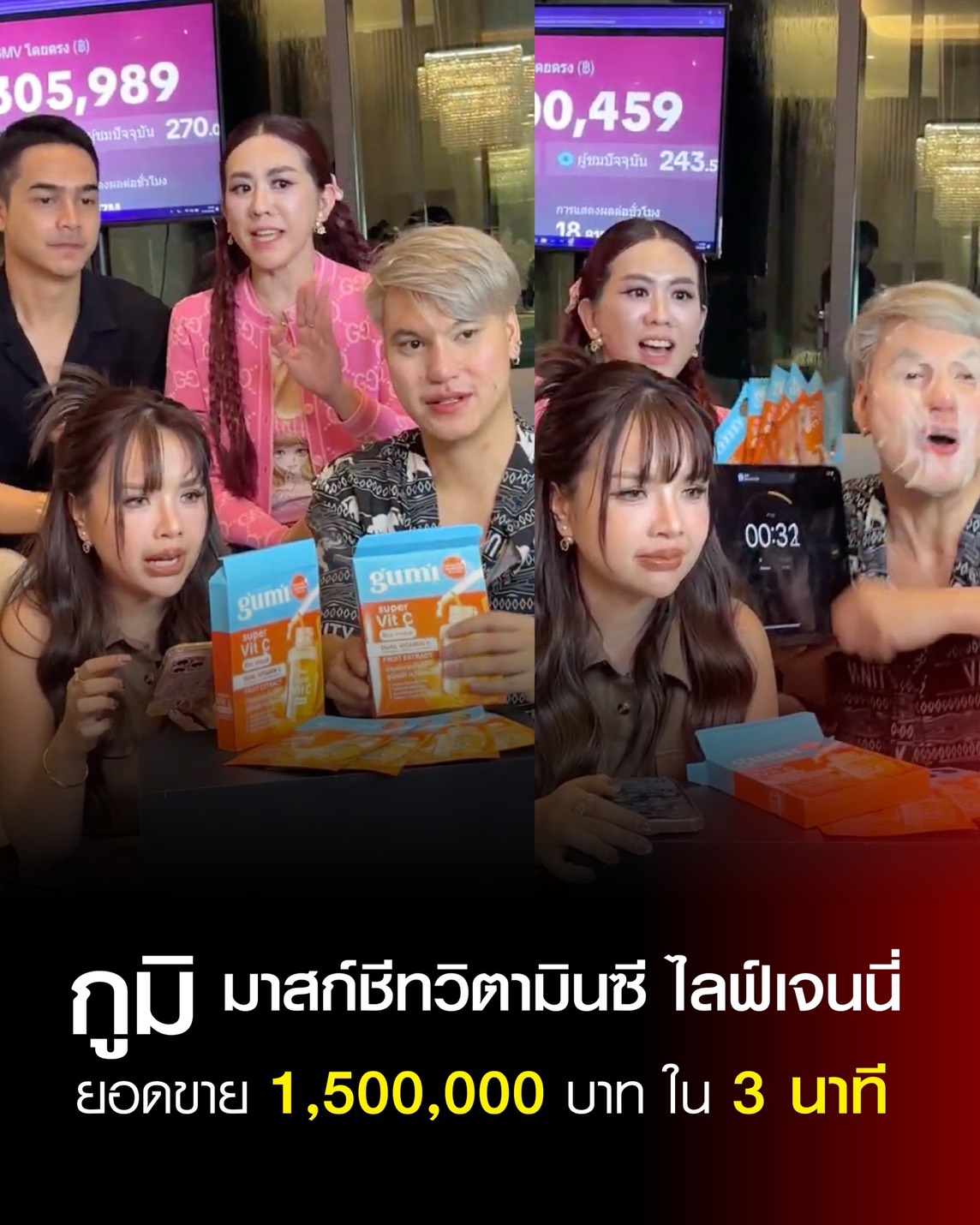 ดูอย่างดีลสายฟ้าแลบกับผลิตภัณฑ์ แบรนด์ กูมิ (Gumi) ที่เพิ่งมาไลฟ์กับ เจนนี่ ครั้งแรกแค่ 10 นาที ก็สามารถปิดยอดขายไปได้หลายสิบล้าน ลองคิดดูสิว่าค่าคอมฯ จากดีลระดับนี้ที่เข้ากระเป๋าเธอนั้นมหาศาลแค่ไหน ซึ่ง เจนนี่ ได้หมดถ้าสดชื่น ฟาดความคอม จากแบรนด์ กูมิ (Gumi) ไป 6 ล้านบาท จากยอดขาย