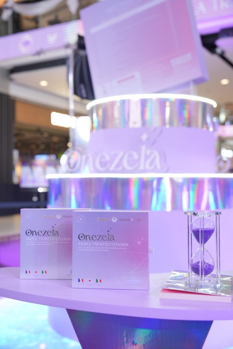 งานจัดขึ้นภายใต้วัตถุประสงค์หลัก คือประกาศเปิดตัวแบรนด์อย่างเป็นทางการ ผลิตภัณฑ์เสริมอาหารสำหรับคนรุ่นใหม่ที่ออกแบบภายใต้คอนเซปต์ “Twist” เป็นผลิตภัณฑ์ที่ผสานคุณสมบัติหลายๆ ด้านอย่างลงตัว Onezela “Triple Twisted Vitamin” เป็นเครื่องดื่มวิตามินผสม 3 พลังบำรุงครบจบในซองเดียว ที่ทั้งฟื้นฟูและบำรุงผิวให้ขาวกระจ่างใส สุขภาพดีจากภายในสู่ภายนอก เสริมพลังสมอง เพิ่มความจำและโฟกัสสำหรับวัยทำงาน รวมถึงมีสารต้านอนุมูลอิสระชะลอวัยถึงระดับเซลล์ แก้ปัญหายอดฮิตของคนรุ่นใหม่ที่ทำงานหนัก ไม่มีเวลาดูแลตัวเอง ขี้หลงขี้ลืม และที่สำคัญไม่จำเป็นต้องซื้อวิตามินหลายๆ ตัว ซึ่ง Onezela สามารถตอบโจทย์ความต้องการได้อย่างครบถ้วน