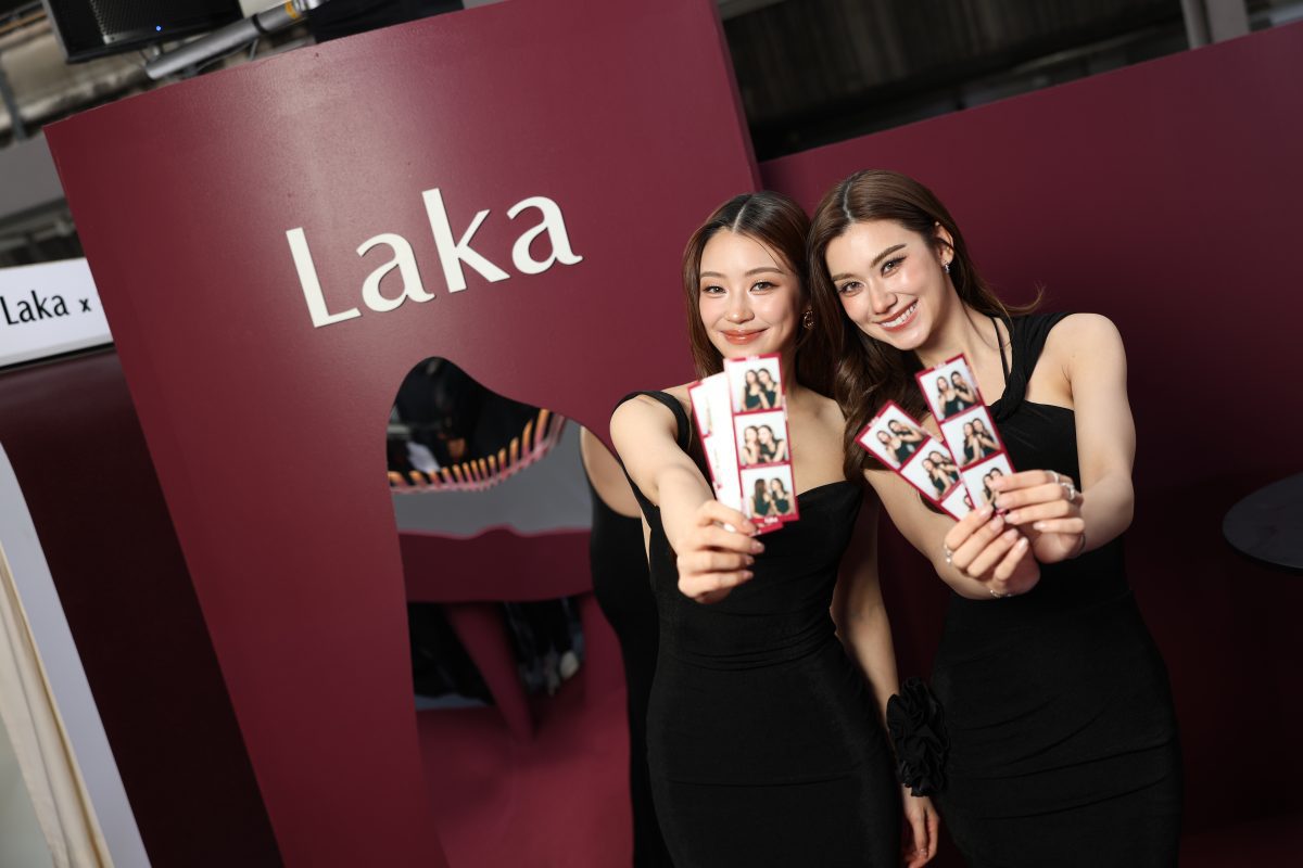 ภายในงานยังได้สองนักแสดงสาว ลีน่า-ลลินา และ หมิว-ณัชชา ที่มาร่วมเปิดประสบการณ์แห่งโลกความงามของ LAKA ซึ่ง ลีน่า-ลลินา เผยว่า “รู้สึกตื่นเต้นมากที่ได้มาร่วมงานกับแบรนด์ LAKA เพราะส่วนตัวลีน่าเคยใช้สินค้าของทางแบรนด์มาอยู่แล้ว พอได้มาสัมผัสตัวแบรนด์ในงานนี้ก็รู้สึกชอบในคอนเซปต์ของแบรนด์ที่ชัดเจนและเปิดกว้างในเรื่องของความหลากหลาย เนื้อสัมผัสเบาบาง สีชัดเนื้อแน่น ใช้ง่าย แล้วแพ็คเกจดีไซน์เค้าเป็นเอกลักษณ์มาก” เธอกล่าว ด้าน หมิว-ณัชชา ที่ชอบแต่งหน้าหลากหลายสไตล์ เล่าว่า “LAKA ทำให้การแต่งหน้าของทุกคนกลับมาสนุกอีกครั้ง เราไม่ต้องคิดว่า ผู้หญิงใช้ได้หรือผู้ชายใช้ไม่ได้ ทุกคนใช้ได้หมด ยิ่งสีของ Fruity Glam Tint คือสวยมาก ฉ่ำกำลังดี ติดทนนานกลิ่นผลไม้ก็หอมแบบไม่แรงเกินไป แล้วมีสีให้เลือกเยอะมาก ดีใจที่ได้มาร่วมงานและสัมผัสประสบการณ์จากทางแบรนด์ บรรยากาศในงานสนุกมาก และกิจกรรมก็ทำมาดีมาก ๆ เลยค่ะ”