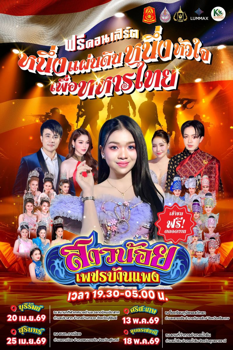 ตารางคอนเสิร์ต “หนึ่งแผ่นดิน หนึ่งหัวใจ เพื่อทหารไทย” ตลอดเดือนเมษายน-พฤษภาคม 2569