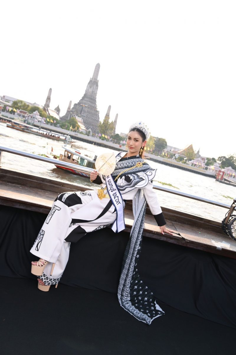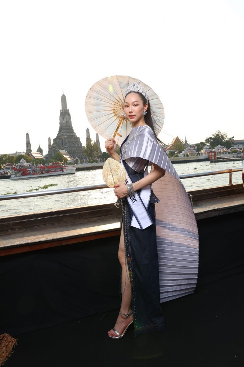 สำหรับไฮไลท์ของงานคือโชว์สุดพิเศษ Runway Battle on the River เวทีเดินแบบจับคู่ประชัน Performance อันทรงพลังบนรันเวย์กลางแม่น้ำเจ้าพระยา พร้อมพรีเซนต์ชุดไทยและผ้าท้องถิ่นจากแต่ละจังหวัด สะท้อนความงดงามและความหลากหลายของวัฒนธรรมไทย ปิดท้ายด้วยช่วง Speech “เสียงจากบ้านเกิด” โดยมีเหล่าสาวงามเป็นตัวแทนถ่ายทอดเสน่ห์ อัตลักษณ์ และเรื่องราวของบ้านเกิดอย่างจริงใจ สะท้อนความหลากหลายของวัฒนธรรมไทย