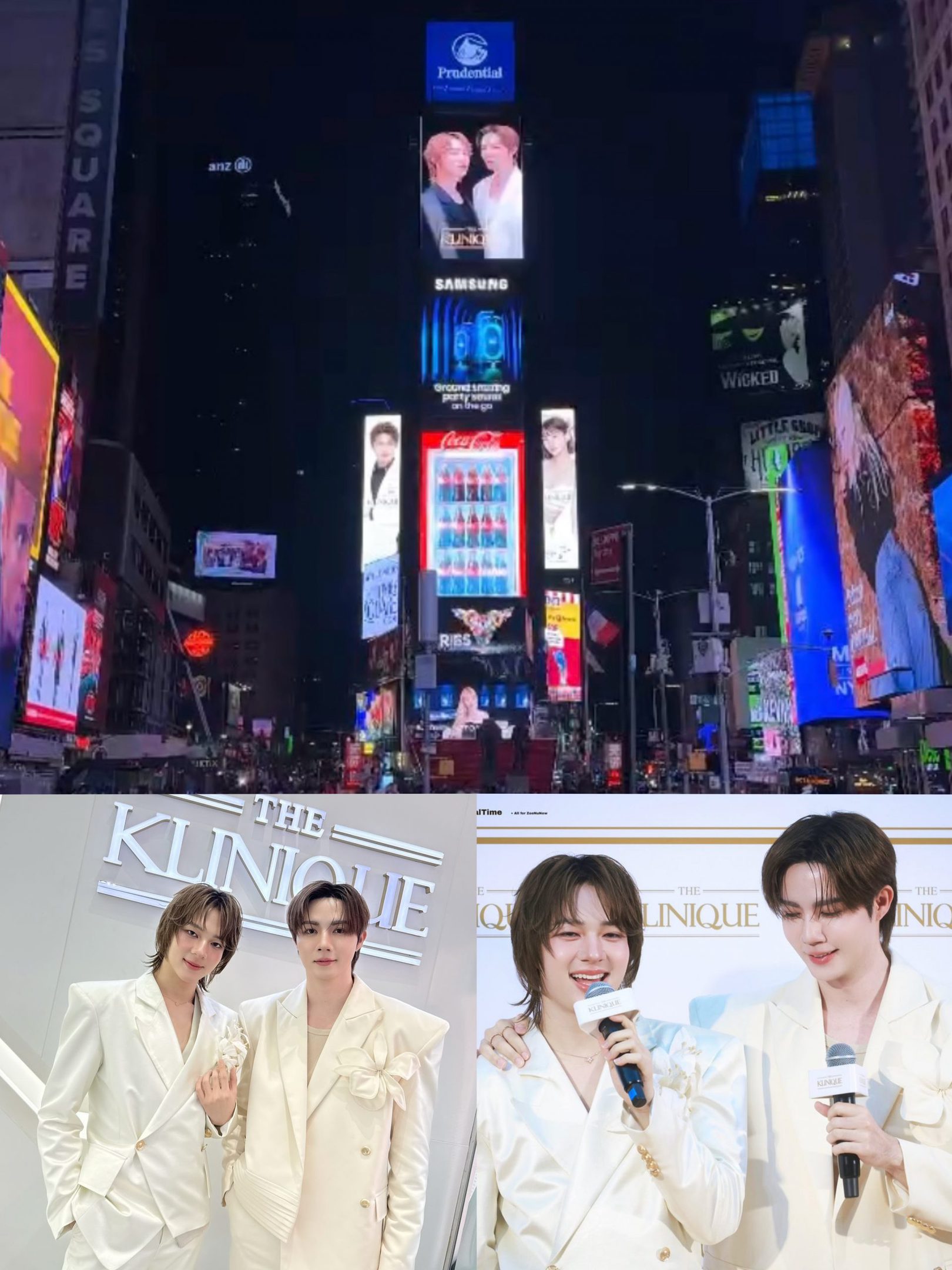 ซี “ดีใจครับที่มีภาพเราสองคนที่ New York, Times Square ก็ขอบคุณเดอะคลีนิกค์ และขอบคุณแฟนๆ ทุกคนที่สนับสนุน แค่คืนเดียวก็ติดเทรนด์ระดับโลก เราก็จะรักษามาตรฐานในการทำงานต่อไป ต้องดูแลทั้งการทำงานและหน้าตา เราทำงานเบื้องหน้าและแม้แต่คนที่ไม่ได้ทำงานเบื้องหน้า การดูแลรักษาใบหน้าและร่างกายก็เป็นสิ่งสำคัญ มันสร้างความมั่นใจให้กับตัวเรา และตอนนี้ก็อยากจะทำจมูก เดี๋ยวเตรียมปรึกษาคุณหมอเลย”