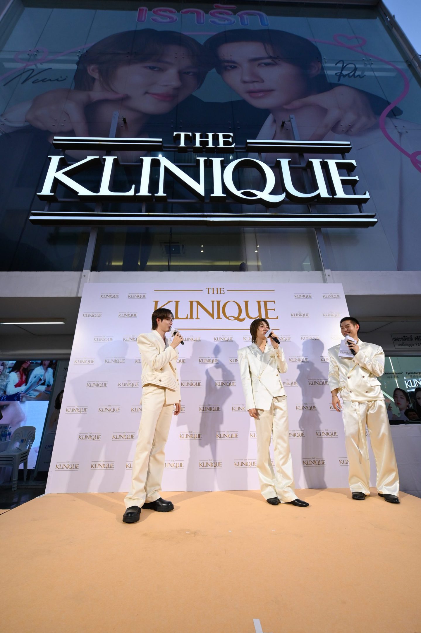 นุนิว “ปกติก็มาใช้บริการที่ เดอะคลีนิกค์ อยู่แล้วก็ดีใจที่ได้มาเป็นครอบครัวเดียวกัน และที่นี่เขาจะเล่นใหญ่มีหน้าเราสองคนที่ขึ้นป้ายใหญ่มากที่สยาม และยังมีภาพเราไปปรากฏบนจอดิจิทัลยักษ์กลาง New York, Times Square ตื่นเต้นมากเลยครับ”