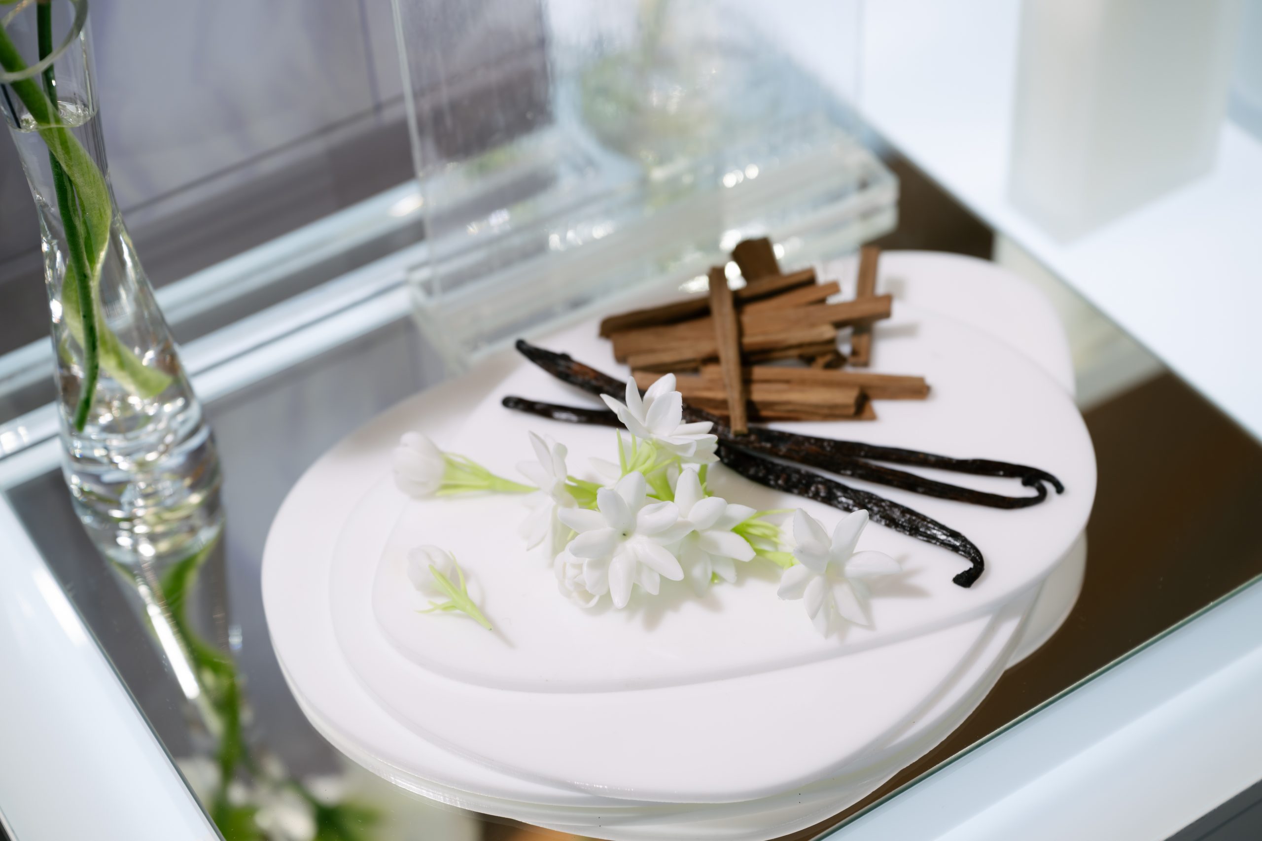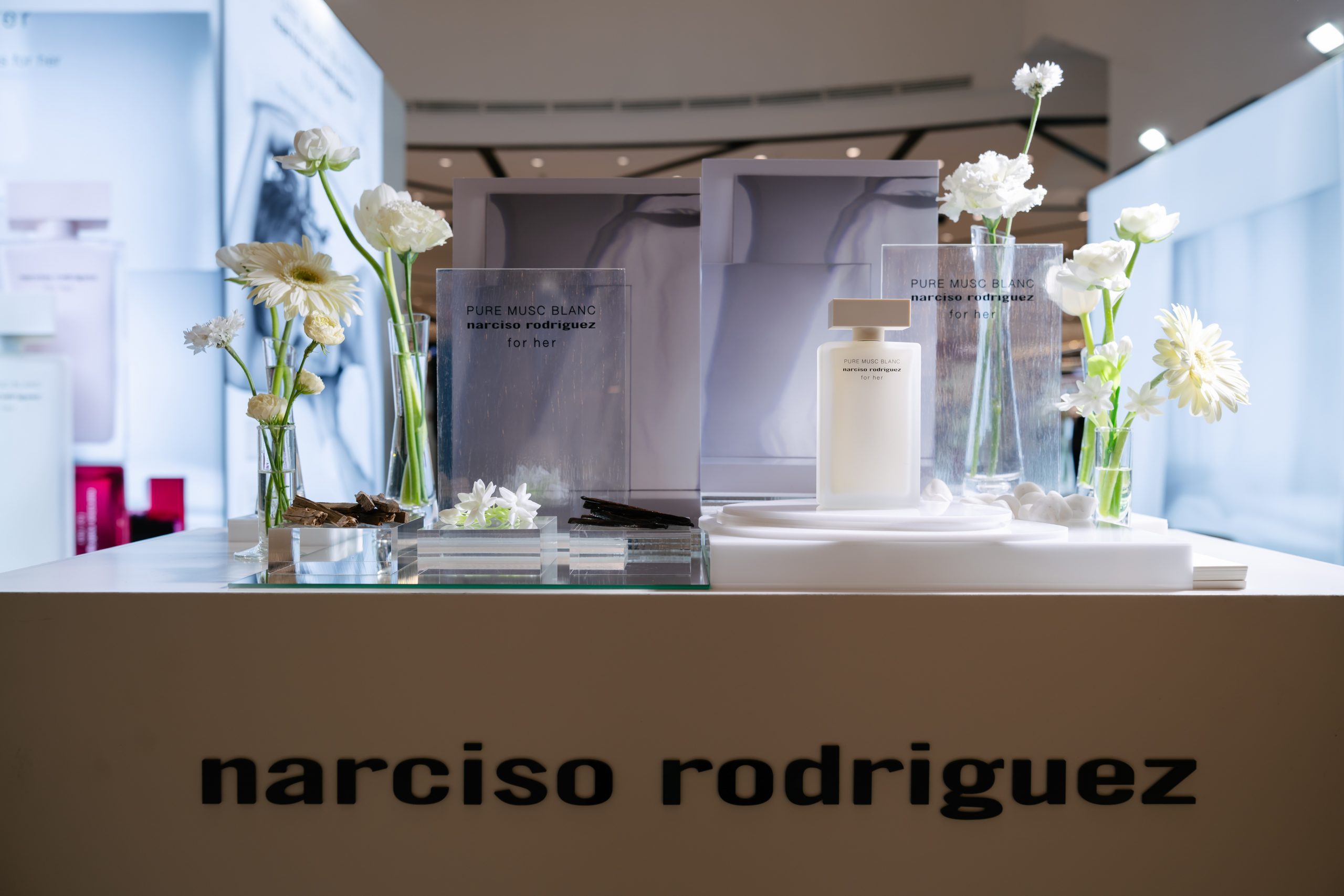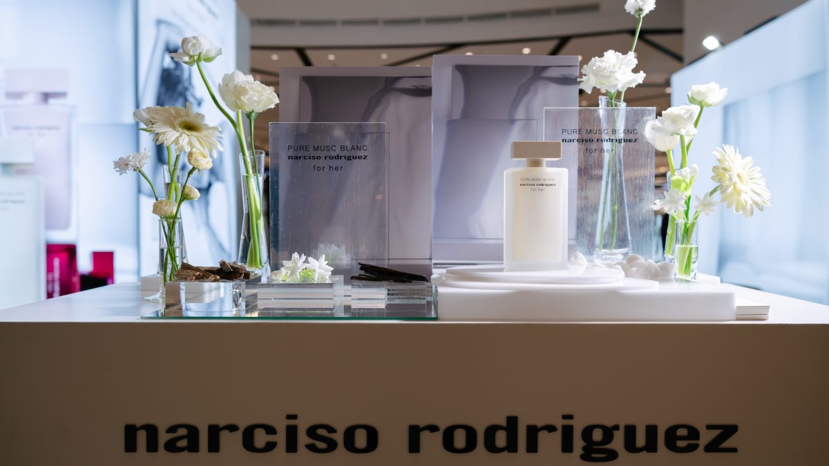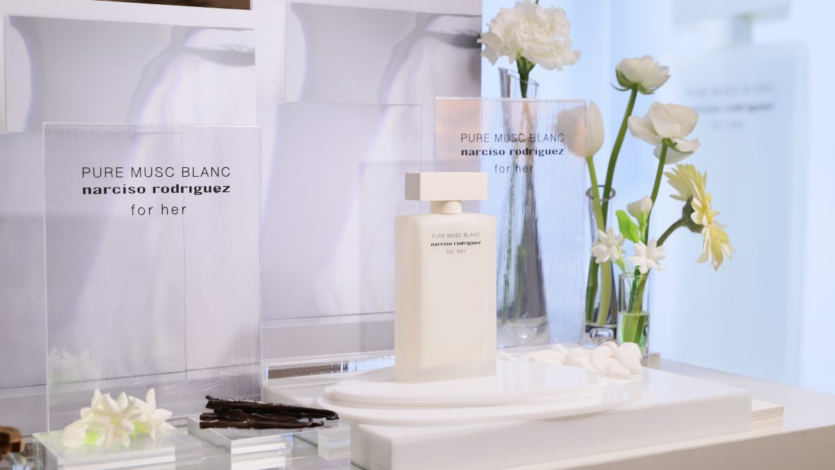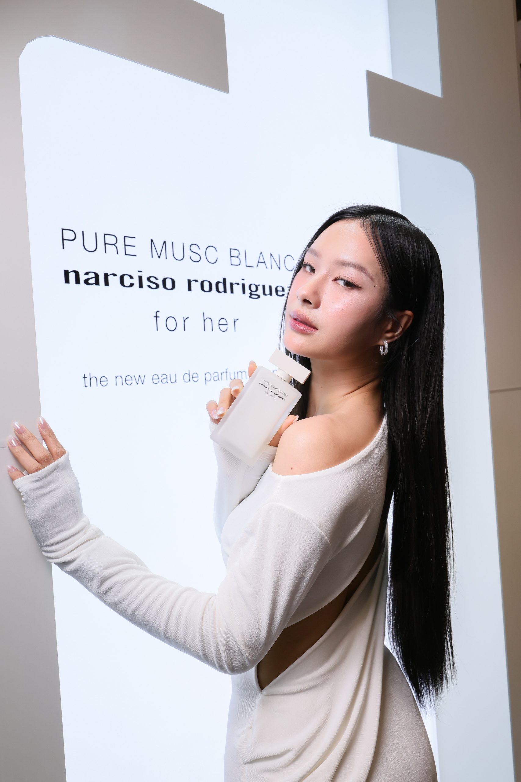 ภายในงานอบอวลด้วยกลิ่นหอมบทใหม่จาก narciso rodriguez for her PURE MUSC BLANC eau de parfum intense ผลงานการรังสรรค์ของ Sonia Constant นักปรุงน้ำหอมชื่อดังผู้อยู่เบื้องหลังความหอมระดับไอคอนิกมากมายในคอลเลกชัน for her ด้วยแรงบันดาลใจในการสร้างสรรค์น้ำหอมที่เปี่ยมเสน่ห์ราวกับประกายแสงโอบล้อมผิว มอบความรู้สึกโปร่งสบาย สะอาด และเย้ายวนในเวลาเดียวกัน โดยถ่ายทอดเอกลักษณ์ heart of musc อันเป็นหัวใจของน้ำหอมจาก narciso rodriguez ผ่านโครงสร้างกลิ่นที่เปิดมิติความหอมด้วย Top Note จาก aldehydes และ pink peppercorn ให้ความสดชื่นโปร่งเบาที่บริสุทธิ์ ก่อนจะเผย Heart Note จาก jasmine และ white floral accords ที่มอบออร่าความสว่างไสวและความเป็นผู้หญิงอย่างลุ่มลึก ปิดท้ายด้วย Base Note จากโทน ambery, woody และ vanilla ที่ให้ความอบอุ่นนุ่มลึก สร้างเอกลักษณ์กลิ่นแนว modern floral chypre ที่โดดเด่นและร่วมสมัย นอกจากนี้ยังสามารถเลเยอร์ร่วมกับกลิ่นดั้งเดิมอย่าง for her PURE MUSC eau de parfum ผสานเข้ากับ PURE MUSC BLANC เพื่อสร้างซิกเนเจอร์กลิ่นที่เป็นเอกลักษณ์เฉพาะตัว พร้อมยกระดับความรู้สึกสัมผัสต่อผิว ครีมมี่ สะอาด และเพิ่มความเข้มข้นใหม่ให้ความหอมของ white flower อย่างละเมียดละไมในทุกอณู